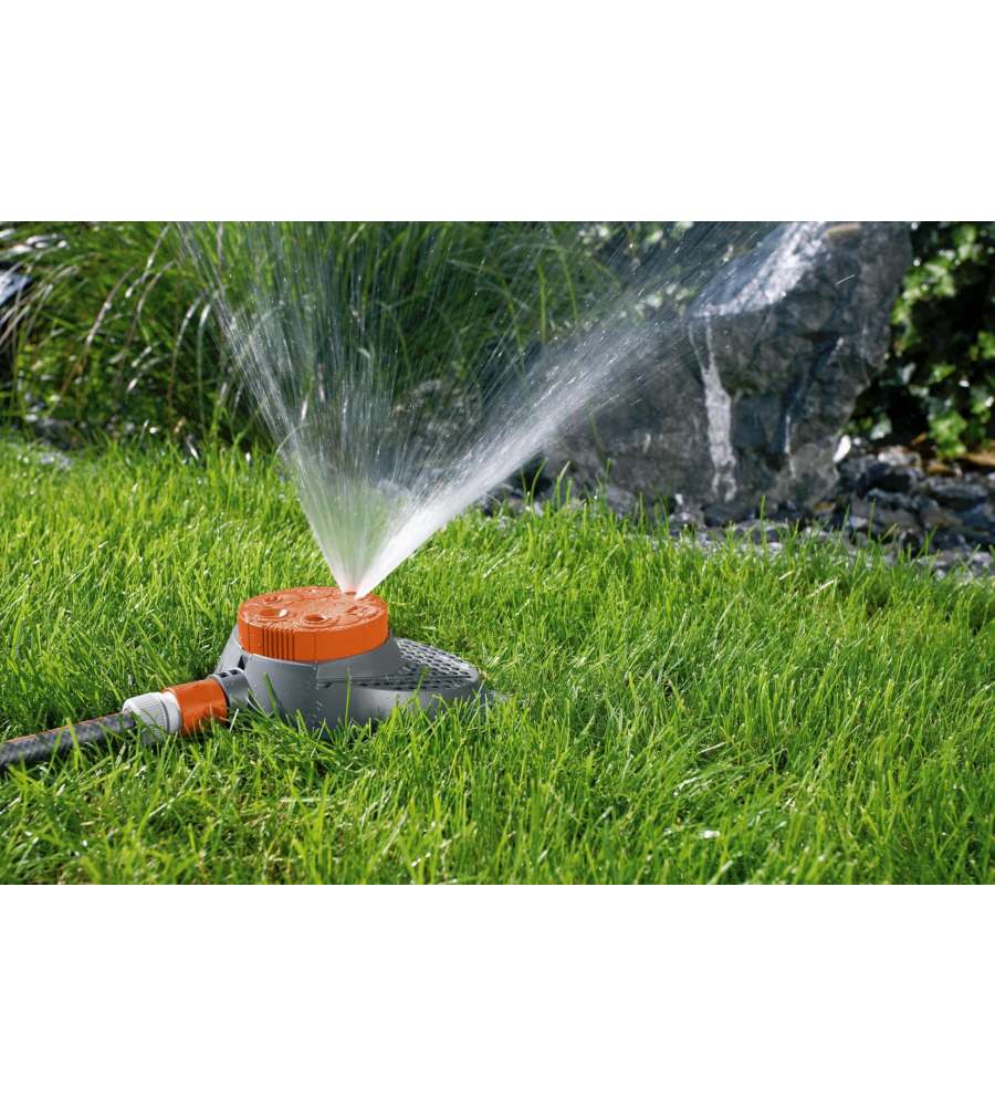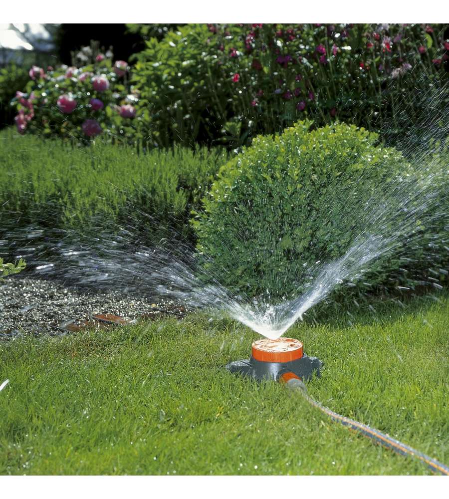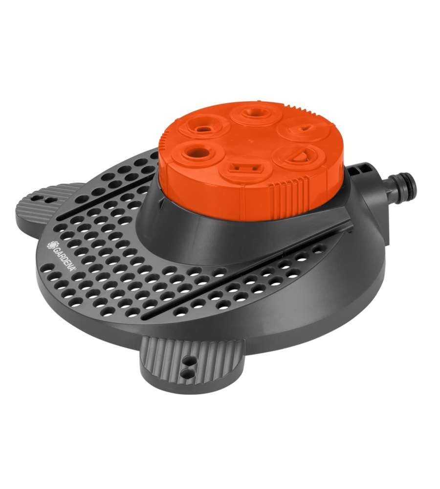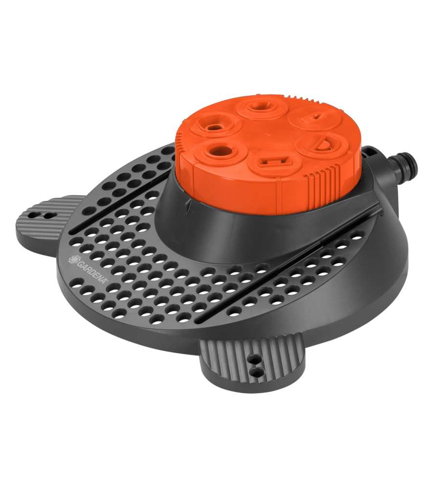 Descrizione: Irrigatore circolare Gardena Classic Boogie, dotato di 6 testine per forme diverse: cerchio, quadrato, rettangolo e altro. Ideale per superfici fino a 100 m², stabile e facile da usare. Perfetto per il tuo giardino!
