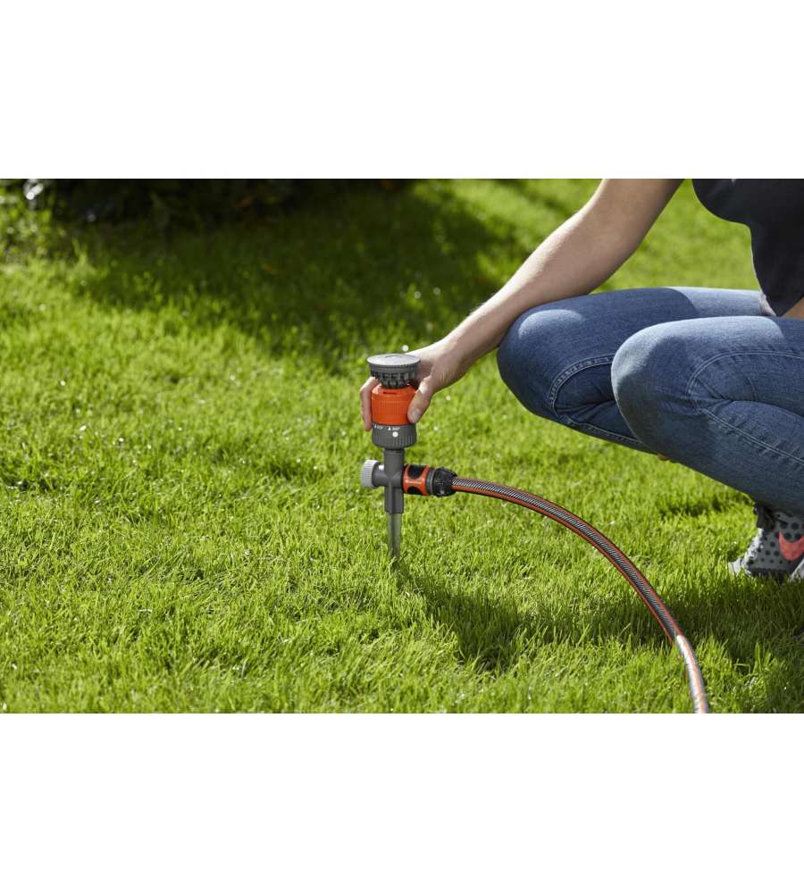 Descrizione: Irrigatore circolare Gardena Comfort Vario su picchetto, ideale per superfici fino a 225 m². Regolazione precisa del settore e stabile picchetto in metallo. Facile da pulire e manutenzionare!