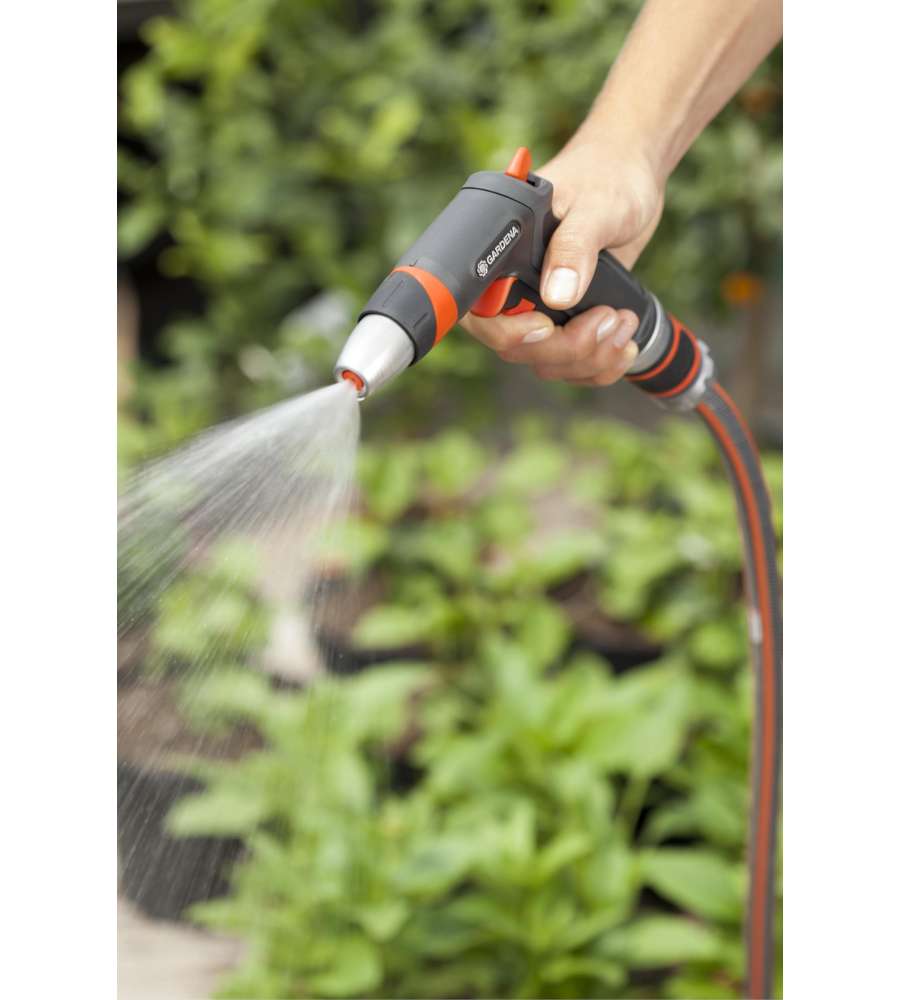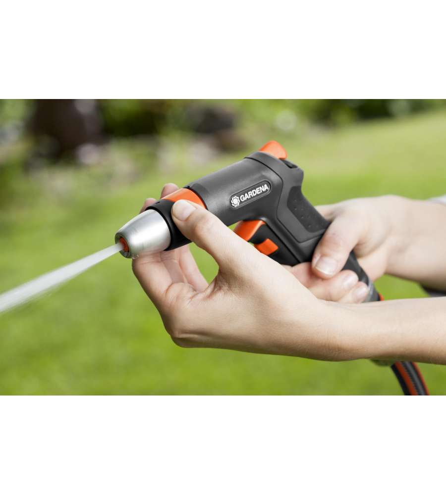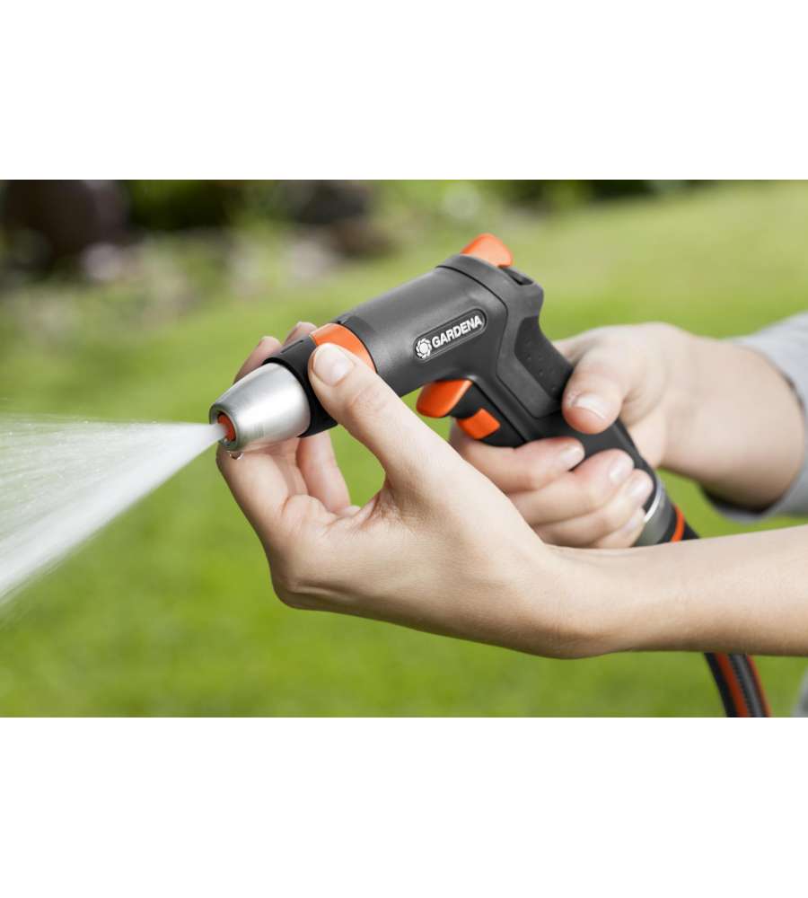 La Gardena Pistola per Irrigazione Premium rappresenta una soluzione ideale per chi cerca un attrezzo versatile e di alta qualità per l'irrigazione e la pulizia del giardino. Con il suo design ergonomico, questa lancia assicura un'impugnatura confortevole, riducendo l'affaticamento durante l'uso prolungato. Inoltre, il getto d'acqua regolabile permette di adattare la pressione dell'acqua in base alle esigenze, rendendola perfetta sia per annaffiare le piante che per pulire superfici esterne. La costruzione in metallo resistente garantisce durabilità nel tempo, mentre il sistema di blocco del pulsante offre un'ulteriore comodità. Che tu sia un giardiniere esperto o un appassionato del fai-da-te, questa pistola per irrigazione non deluderà le tue aspettative.