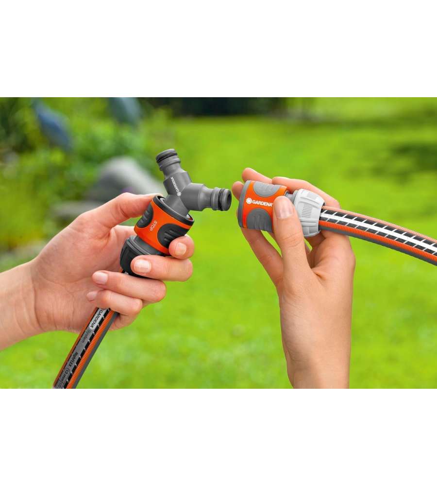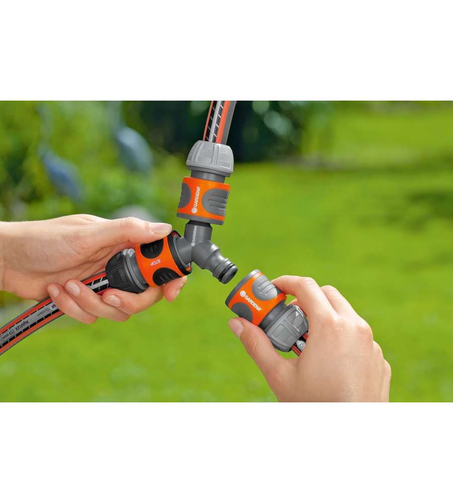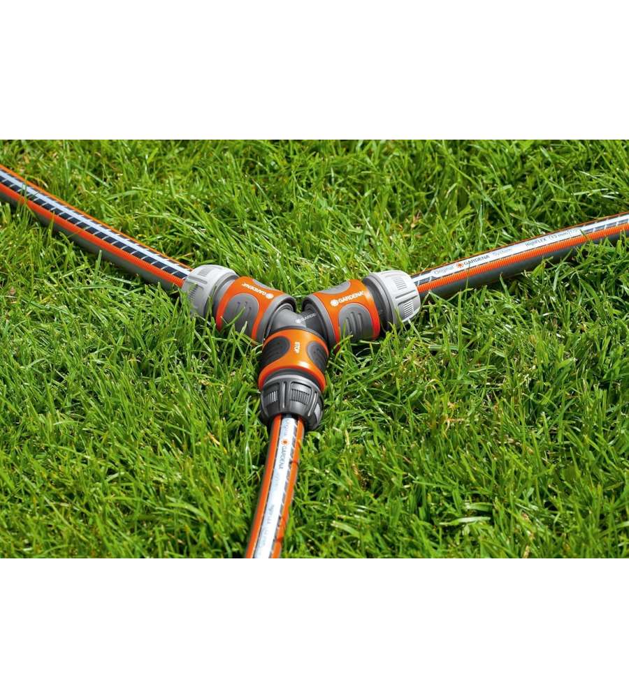 Descrizione: Raccordo a Y Gardena, ideale per diramare tubi da giardino da 19 mm a 13 mm. Realizzato in plastica resistente, permette l'uso simultaneo di due tubi. Facile da installare, compatibile con sistemi standard.