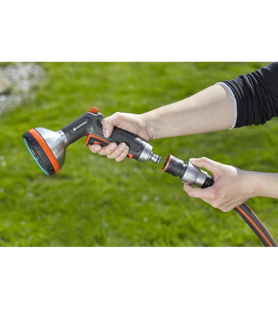 Il raccordo acqua-stop Gardena da 19 mm (3/4") rappresenta una soluzione pratica e innovativa per l'irrigazione del tuo giardino. Grazie al suo design ergonomico e alla costruzione in plastica resistente, questo raccordo non solo previene perdite d'acqua, ma facilita anche il cambio rapido degli accessori senza la necessità di chiudere l'acqua. Le impugnature antiscivolo garantiscono una presa sicura, mentre le cinque modalità di irrorazione offrono flessibilità e versatilità a seconda delle tue esigenze di irrigazione, rendendolo un alleato indispensabile per ogni appassionato di giardinaggio.
