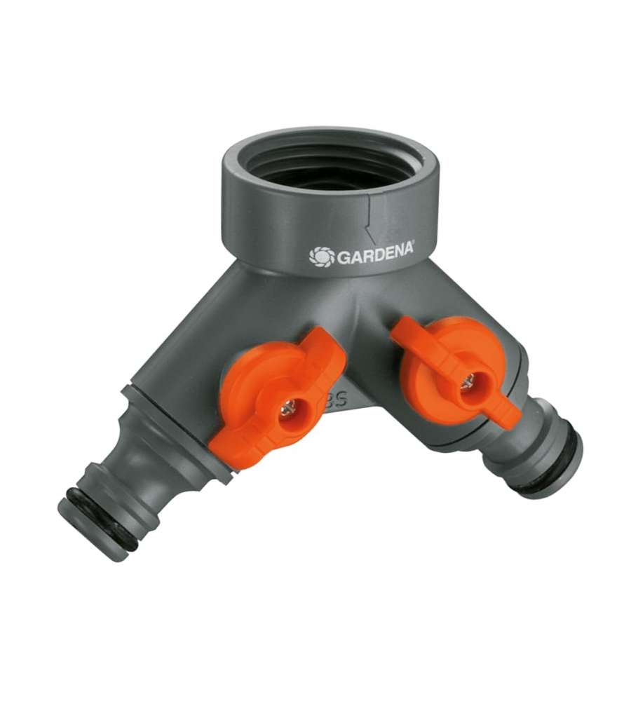 Rubinetto a 2 vie da 1" (33,3 mm) in plastica resistente, consente di collegare due tubi a un unico rubinetto. Uscite regolabili singolarmente, garanzia di 5 anni. Ideale per irrigazione e utilizzo contemporaneo di più dispositivi.Destinazione d'uso: