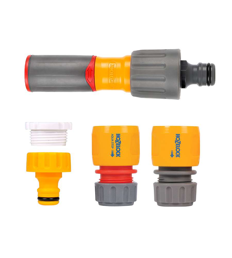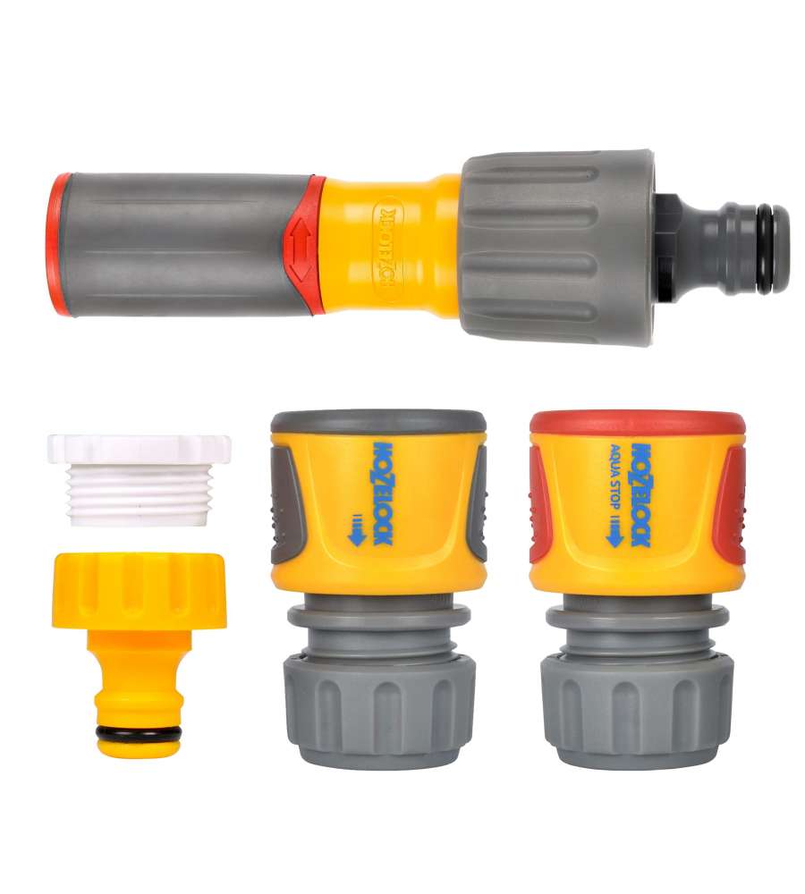 1 raccordo Aqua Stop per tubo da 12,5-15 mm; 1 raccordo rapido; 1 raccordo per rubinetto da 1/2" - 3/4"; 1 lanciaCaratteristiche: