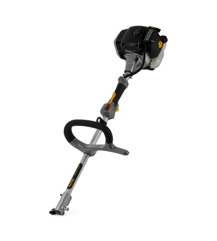 Decespugliatore multifunzione Alpina con motore 2 tempi da 25.4 cc e potenza di 0,7 kW. Include testina nylon, disco, tagliasiepi da 40 cm e potatore da 25 cm. Asta di 26 mm, bretelle incluse. Dimensioni: 260x290x1170 mm.Potenza: