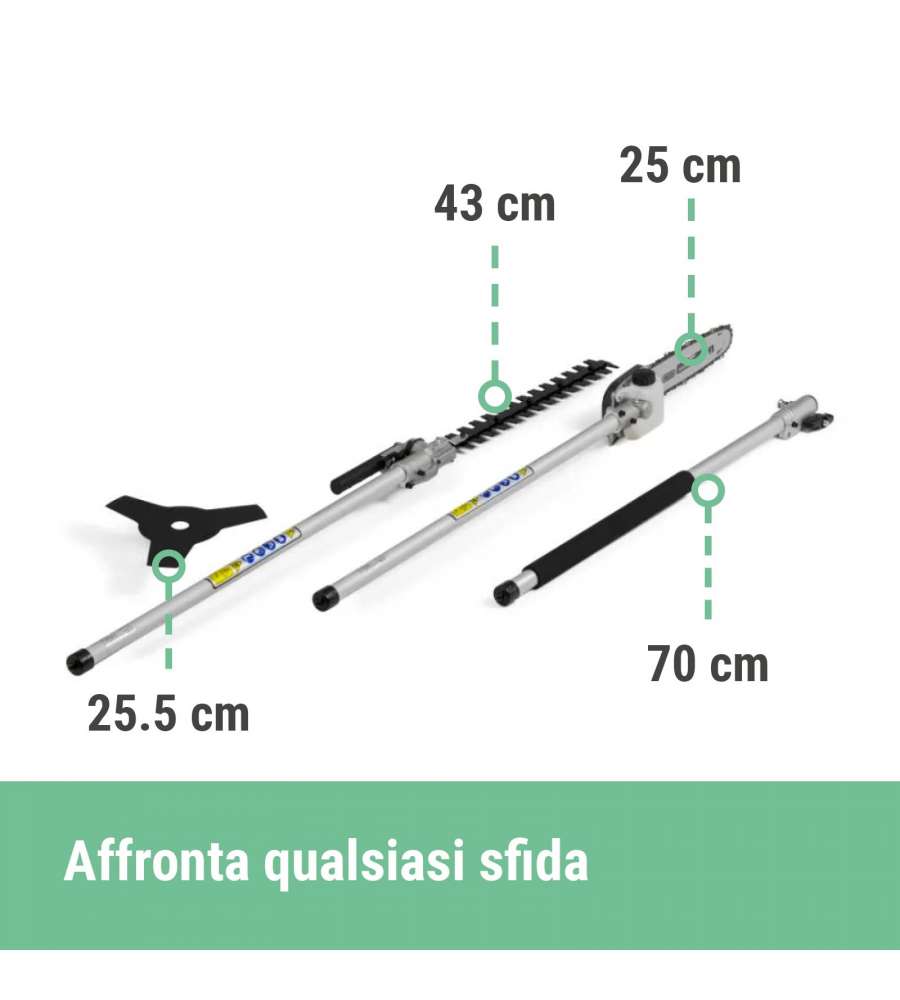 testina nylon, disco, tagliasiepi da 40 cm, potatore da 25 cm, bretelleCaratteristiche: