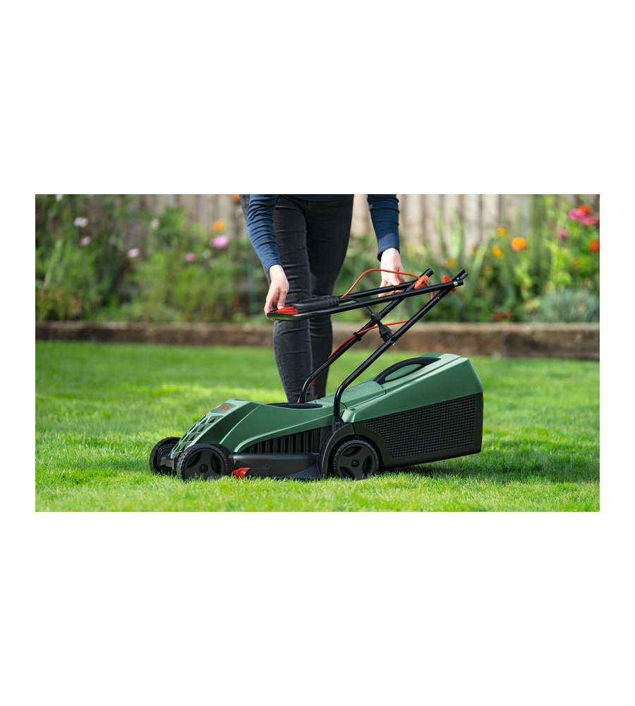 L'efficiente motore da 1200 W del Bosch EasyRotak 32-235 garantisce prestazioni di taglio insuperabili, rendendolo ideale per chi cerca un rasaerba che combini potenza e manovrabilità. Grazie alla larghezza di taglio di 32 cm, è possibile tagliare rapidamente anche aree più piccole. La regolazione dell'altezza di taglio permette di adattare il lavoro alle esigenze specifiche del proprio prato, mentre il cesto raccoglierba da 31 litri consente di ridurre le interruzioni per lo svuotamento. Le impugnature pieghevoli rendono il rasaerba facile da riporre, occupando meno spazio e semplificando il trasporto. Che si tratti di bordi intricati o di aree più ampie, questo rasaerba è progettato per offrire risultati eccellenti con il minimo sforzo.