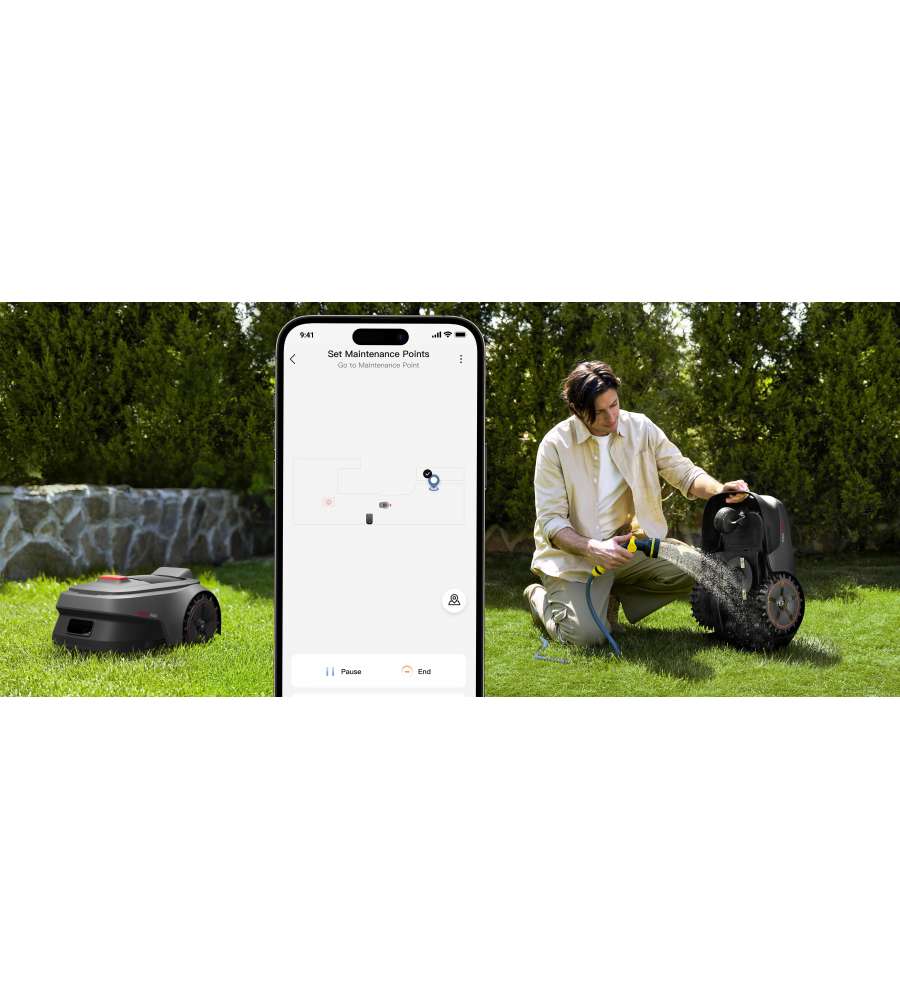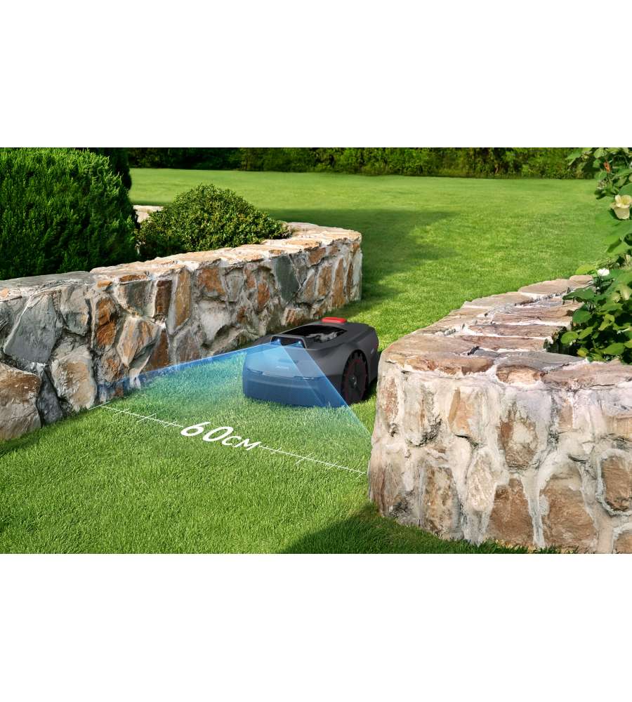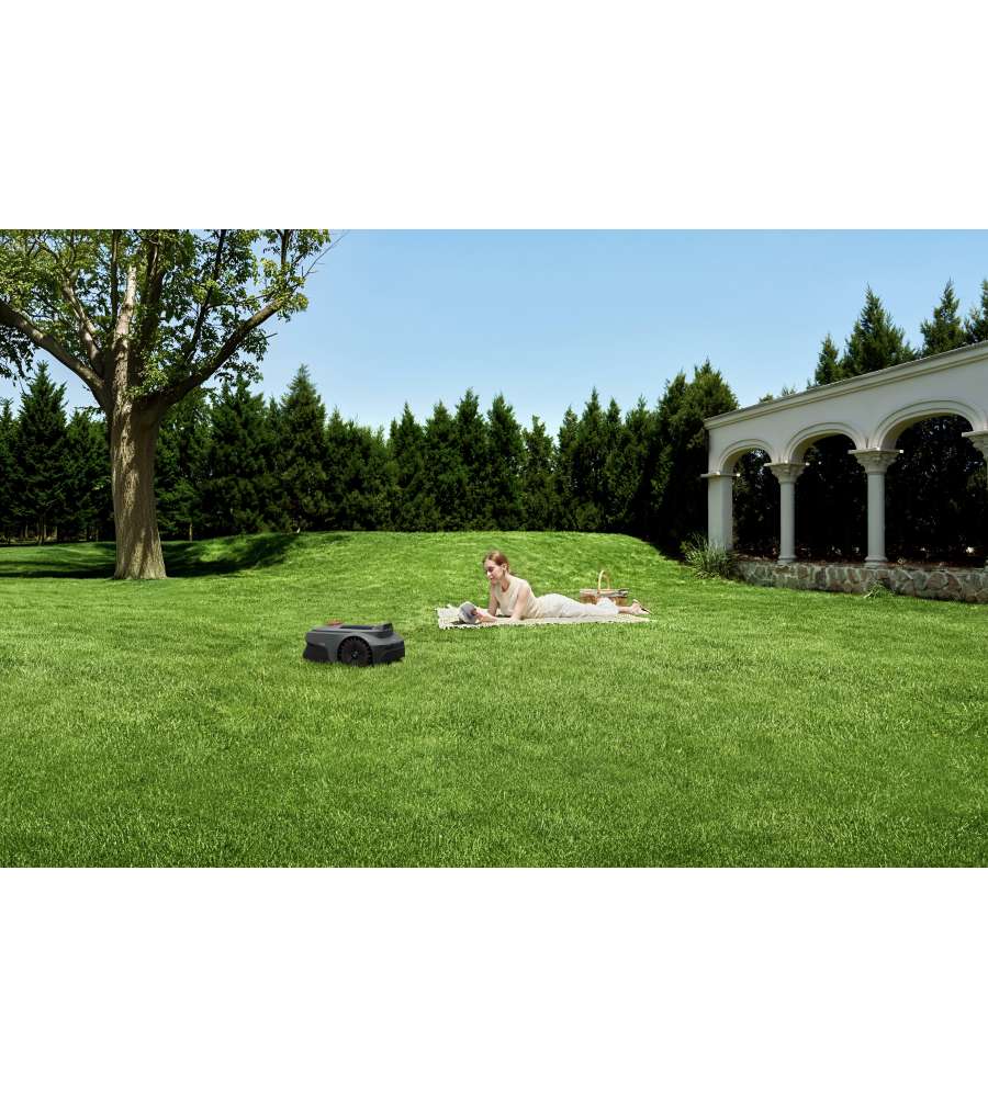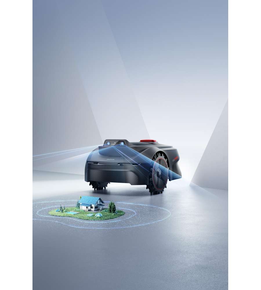Robot tagliaerba senza fili con Intelligenza Artificiale. Mappatura automatica, gestione tramite app, taglio su terreni difficili e riconoscimento oggetti per sicurezza. Altezza di taglio 2-6 cm, autonomia 50 min, copertura fino a 300 m².Garanzia: