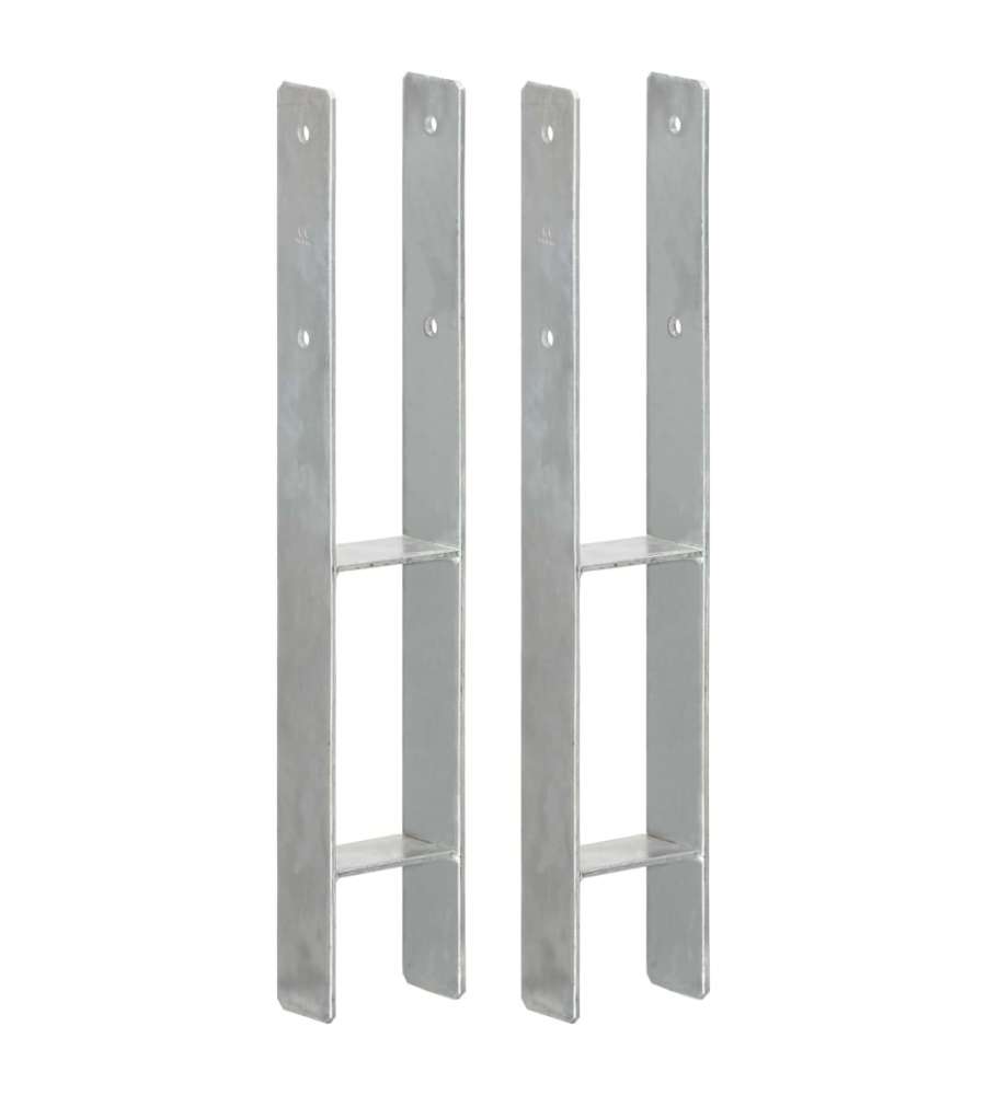 Colore: Argento Materiale: Acciaio zincato a caldo Dimensioni: 9 x 6 x 60 cm (L x P x A) A forma di H Con fori già presenti Assemblaggio richiesto: No La consegna include: 2 Picchetti