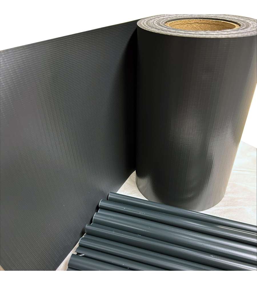 Striscia frangivista in PVC antracite, dimensioni 0,19 x 35 m. Garantisce privacy e protezione per giardini e balconi. Resistente agli agenti atmosferici, facile da installare con clip incluse. Design moderno e personalizzabile.Dimensioni imballo: