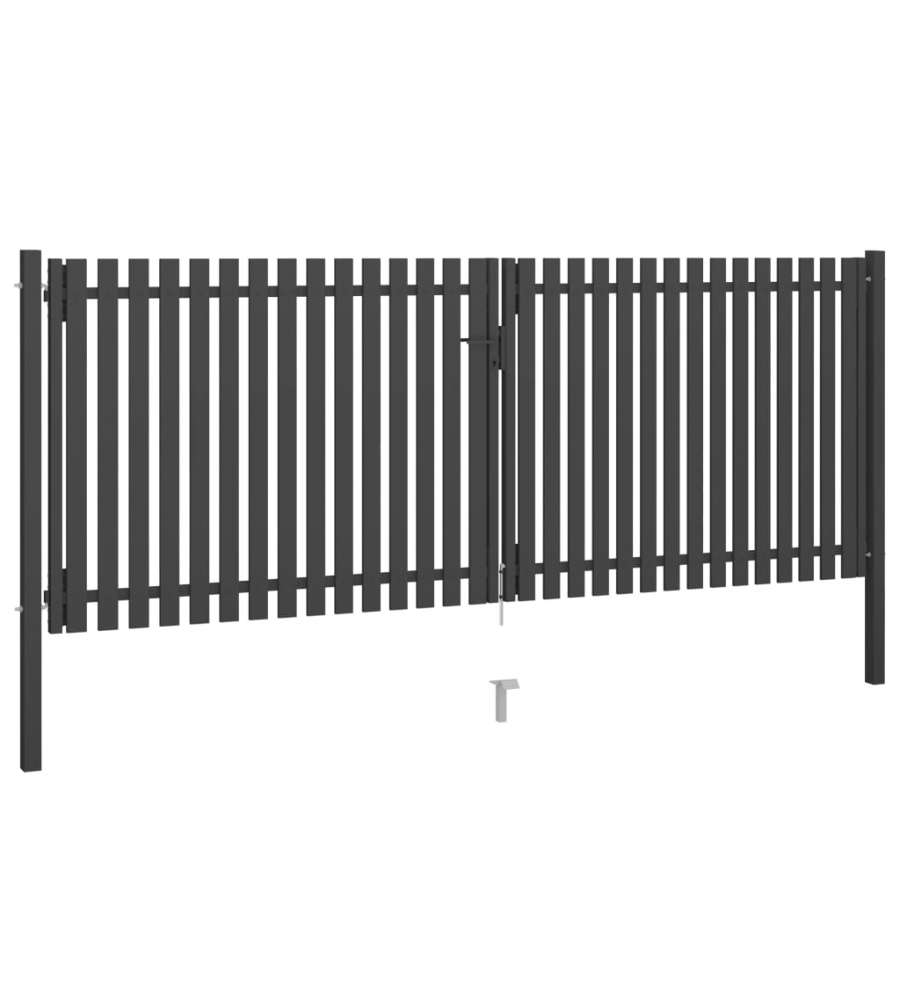 Grazie al suo telaio in tubo piatto rinforzato, il nostro cancello da giardino offre un alto grado di sicurezza, mentre forma un favoloso ingresso sulla vostra propriet?. Il centro include un perno di terra per un maggiore supporto. Il cancello ? realizzato in acciaio resistente e verniciato a polvere contro ruggine e corrosione. Questo cancello di recinzione ? dotato di un sistema di bloccaggio e ? dotato di due pali solidi e robuste cerniere per una facile installazione.