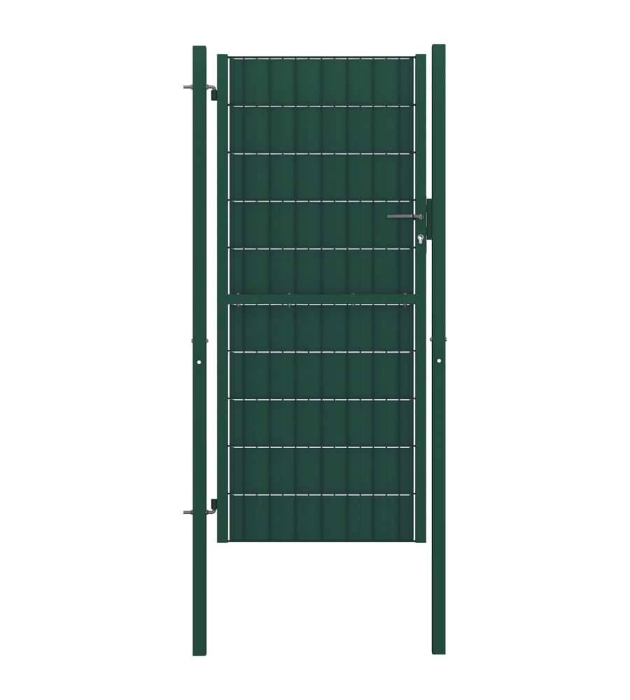 Il cancello del giardino ? realizzato in film in PVC e acciaio, materiale che garantisce la sua eccellente durata e robustezza. Grazie alla sua struttura con elementi ravvicinati il cancello della recinzione offre ulteriore rigidit?. Questo cancello per giardino offre anche un elevato livello di sicurezza e privacy, andando a formare un ingresso favoloso per la vostra propriet?. Il cancello include due solidi paletti e robuste cerniere per una facile installazione.