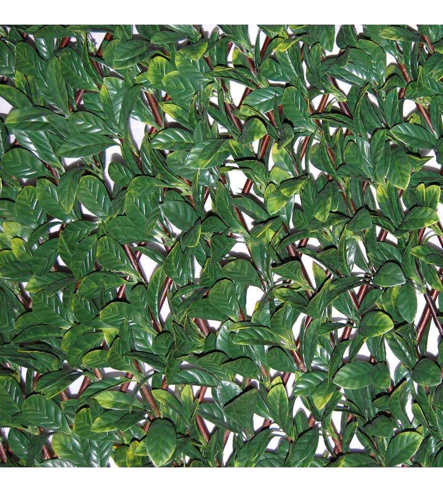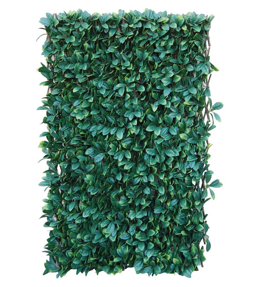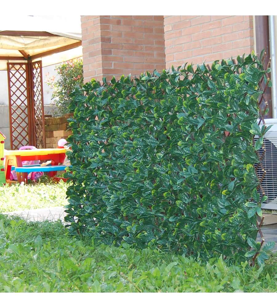 Siepe artificiale in HDPE con foglie 3D realistiche, struttura estensibile in legno naturale, dimensioni 200x4x100 cm. Resistente ai raggi UV, ideale per divisori e decorazioni. Facile da montare, durevole e senza manutenzione.Destinazione d'uso: