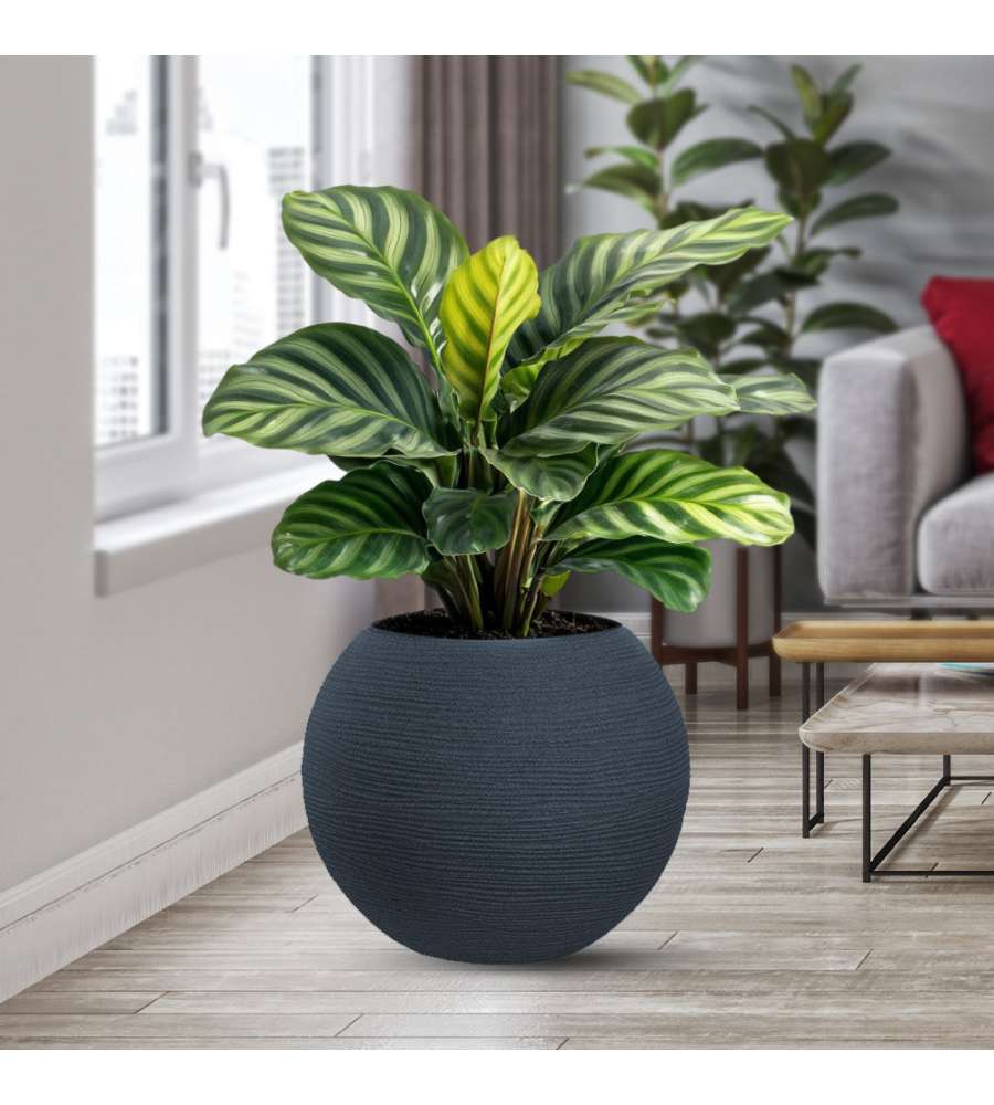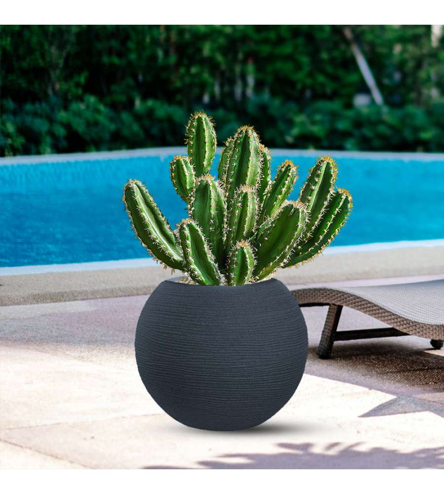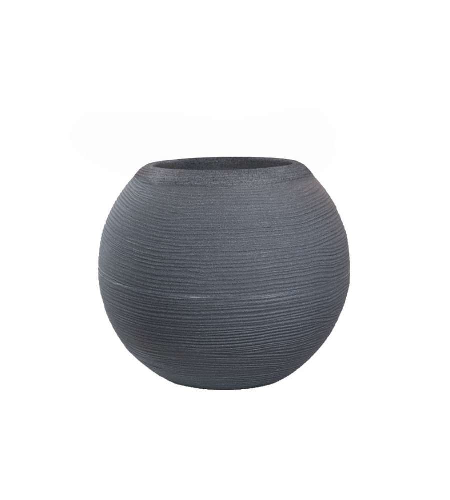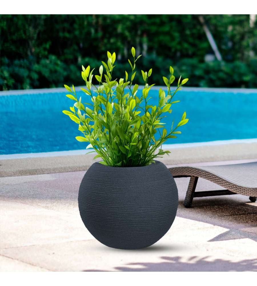 Vaso tondo a sfera in resina di polietilene, dimensioni D.40 x H.33 cm, colore antracite. Resistente agli urti, temperature da -60°C a +80°C e raggi UV. Leggero, ecologico e atossico, ideale per interni ed esterni. Made in Italy.Uso esterno: