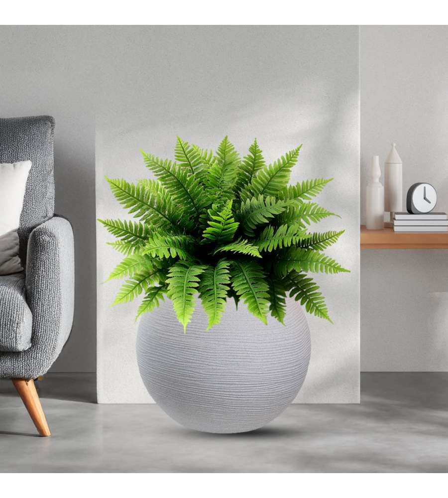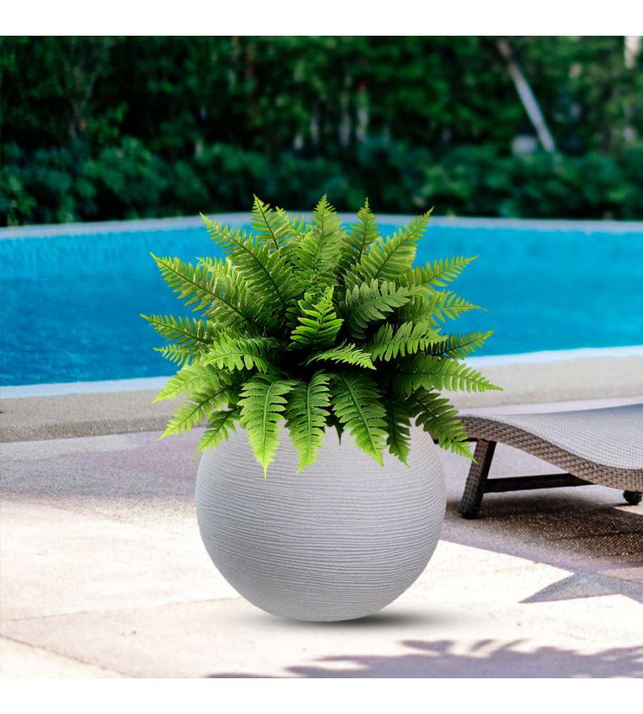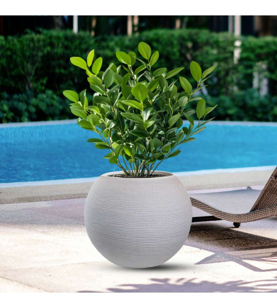 Descrizione: Vaso tondo sfera Botticelli in resina beige, d.40x33 cm. Leggero, resistente agli urti e ai raggi UV. Ideale per interni ed esterni, elegante e riciclabile. Arreda con stile il tuo giardino!