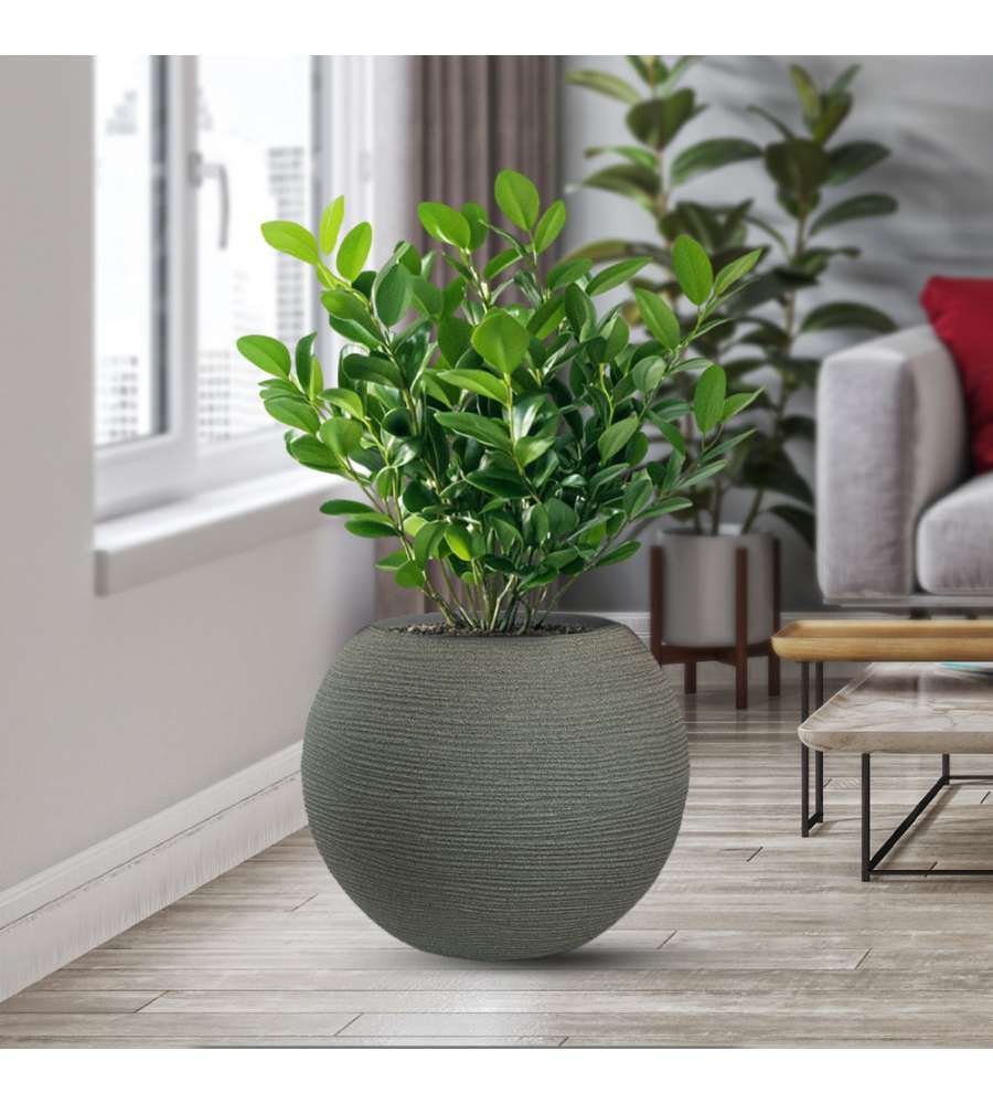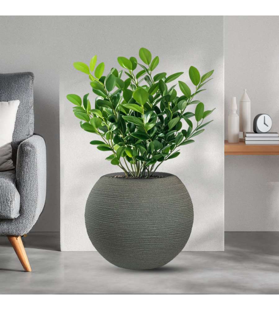 Descrizione: Vaso tondo a sfera Botticelli in resina di polietilene, d.40x33 cm. Elegante e resistente, ideale per esterni e interni. Resistente a urti, temperature estreme e raggi UV. Progettato in Italia, riciclabile.