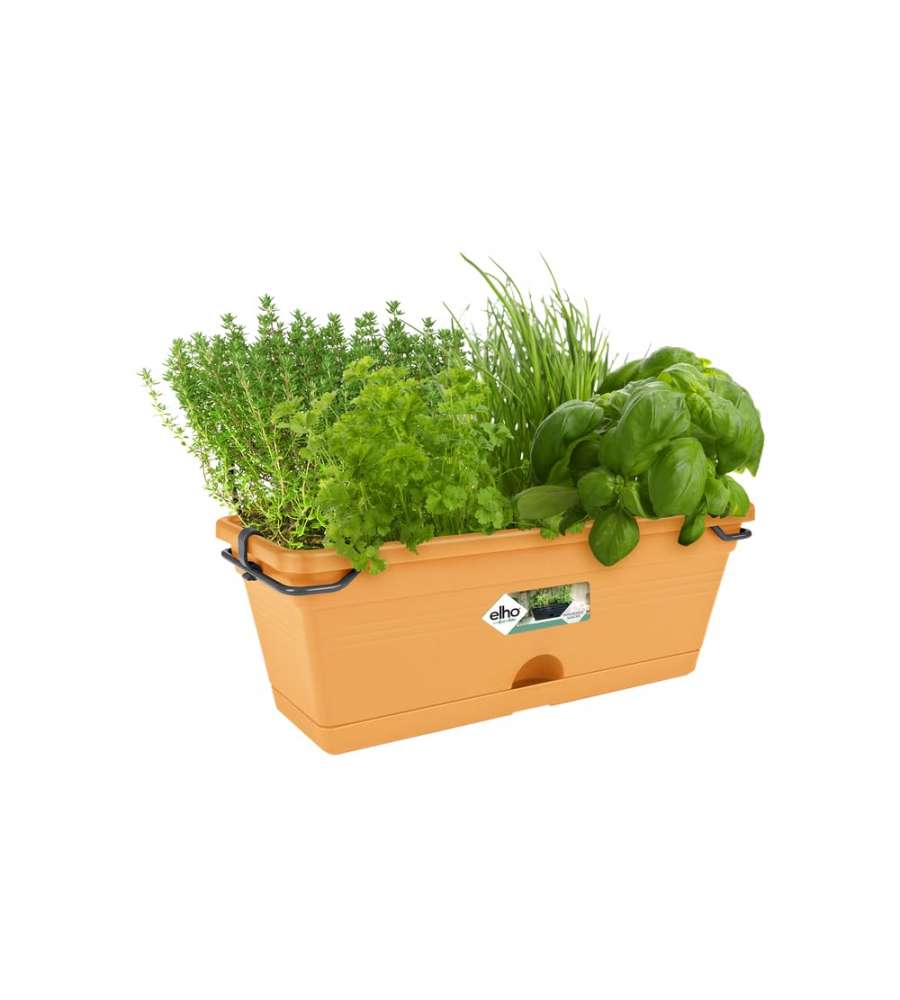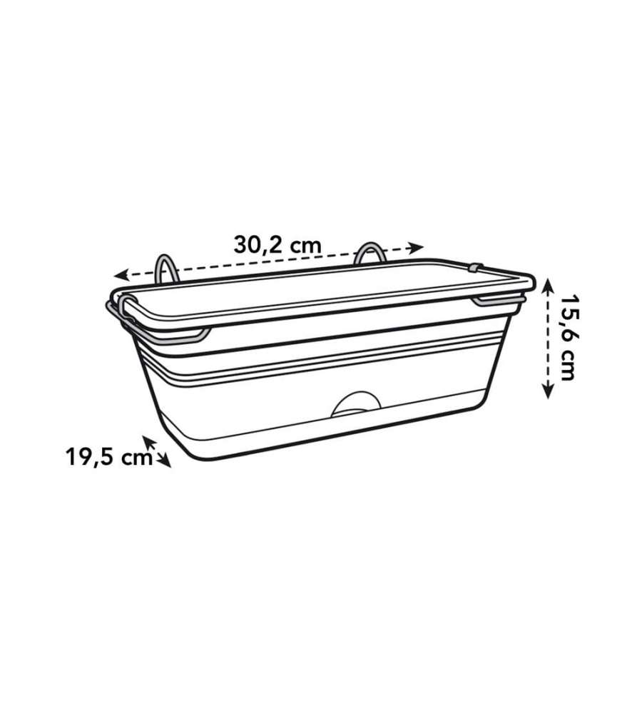 Descrizione: Fioriera per balcone Elho Green Basics Trough Allin1 30 cm, perfetta per ringhiere fino a 6 cm. Include sottovaso integrato e apertura laterale per facile innaffiatura. Realizzata in plastica riciclata, resistente e durevole.