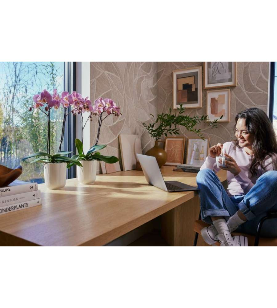 Descrizione: Scopri il vaso VIBES ELHO per orchidee, in polipropilene riciclato e bianco elegante. Con base rialzata per drenaggio ottimale, favorisce la crescita sana delle radici. Design moderno e sostenibile!
