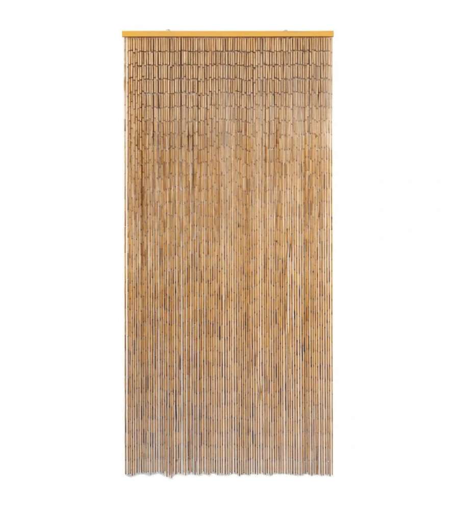 Tenda in bambù 90x220 cm, blocca insetti, offre privacy e isolamento termico. Design decorativo con 90 steli sottili, montata su barra di legno. Colore marrone.Altro 1: