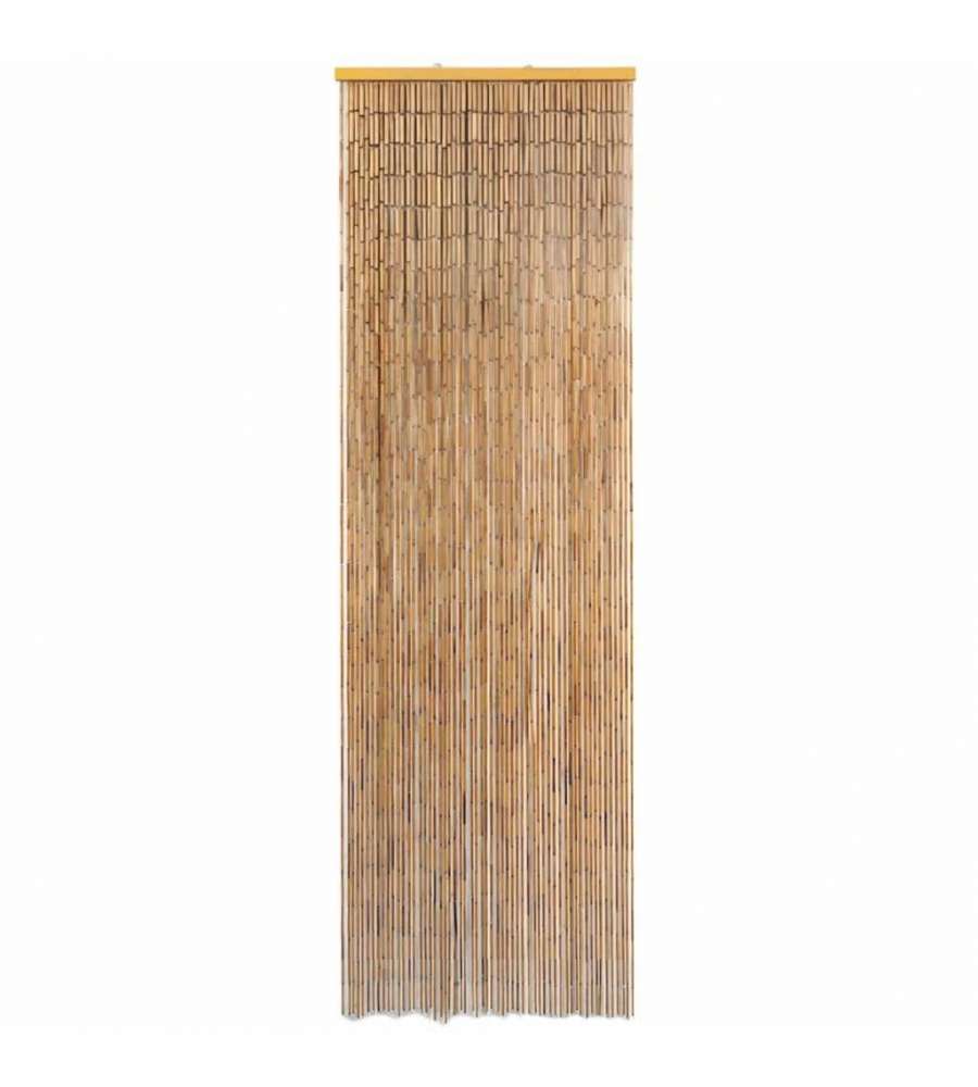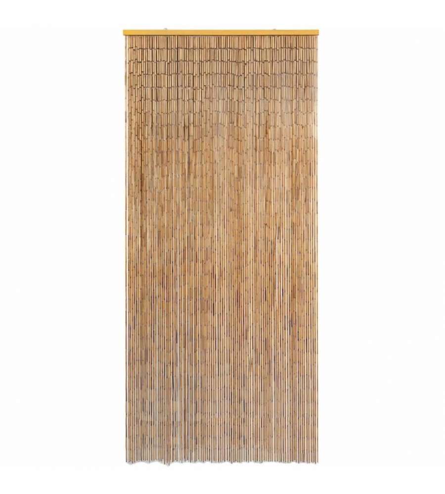 Tenda in bambù 90x220 cm, blocca insetti, offre privacy e isolamento termico. Design decorativo con 90 steli sottili, montata su barra di legno. Colore marrone.Altro 1: