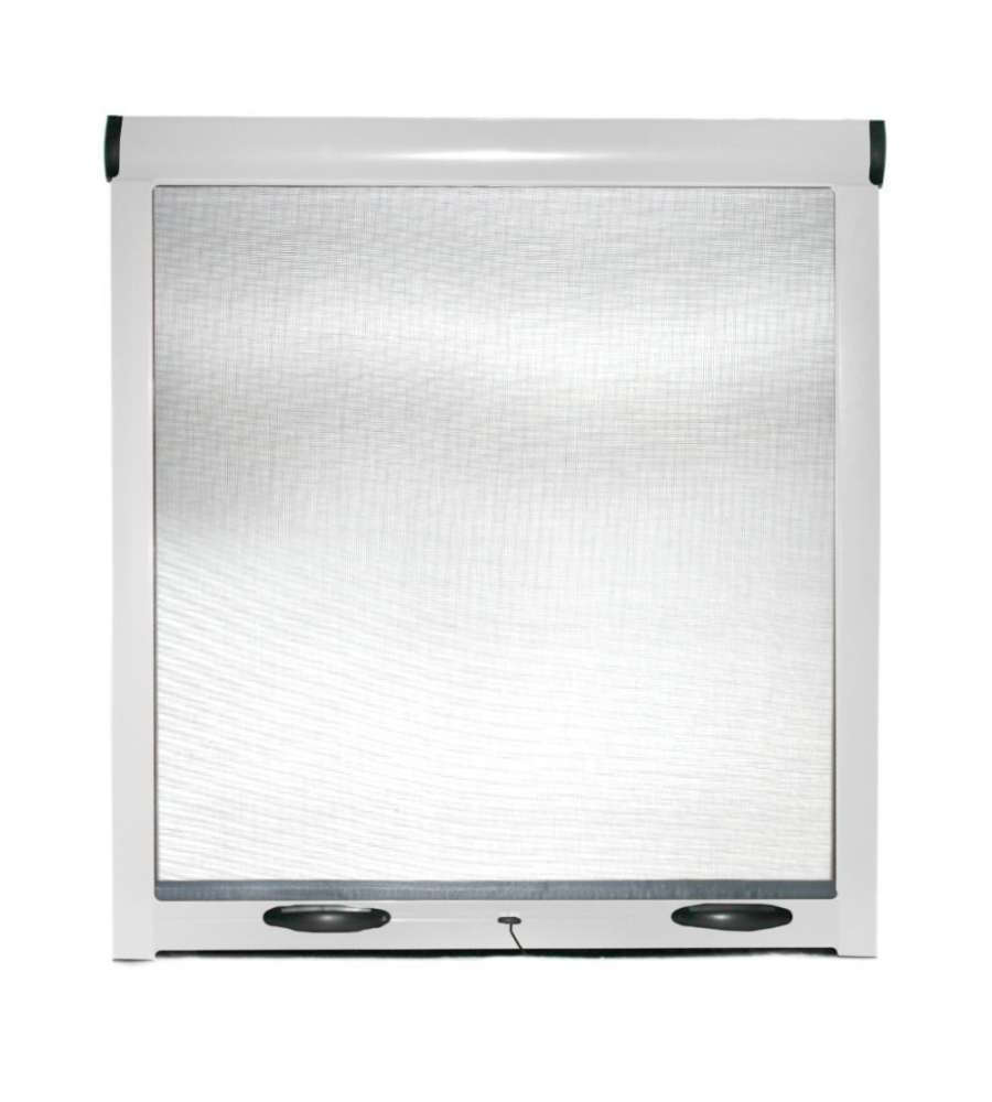 Zanzariera a rullo riducibile universale per finestre verticali, colore bianco, dimensioni 60x150 cm. Struttura in alluminio e telo in fibra di vetro, maniglie in ABS antiurto, ingombro finale di soli 4 cm, facile montaggio interno o esterno.Antiurto: