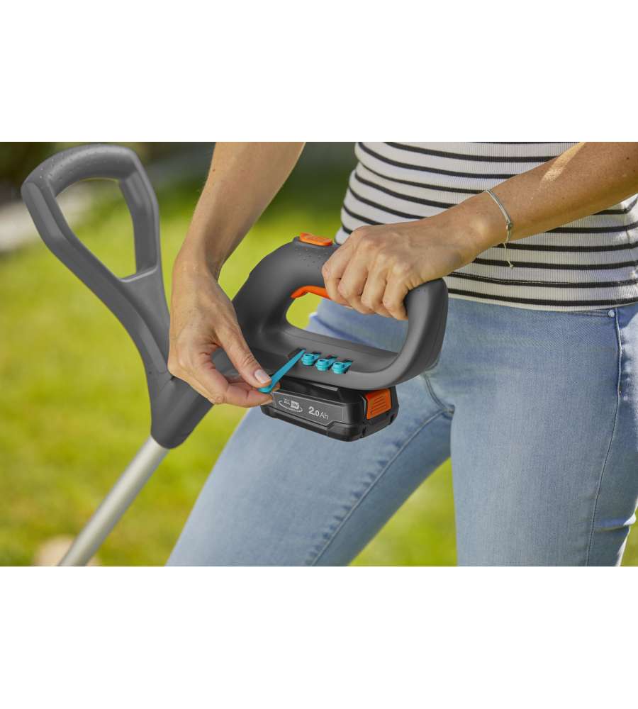 Trimmer a batteria extra leggero per rifinire senza fatica i bordi del prato. Tensione batteria 18 V, larghezza taglio 23 cm. Il tagliabordi a batteria SmallCut 23/18V P4A pronto all'uso di GARDENA è estremamente leggero e potente.