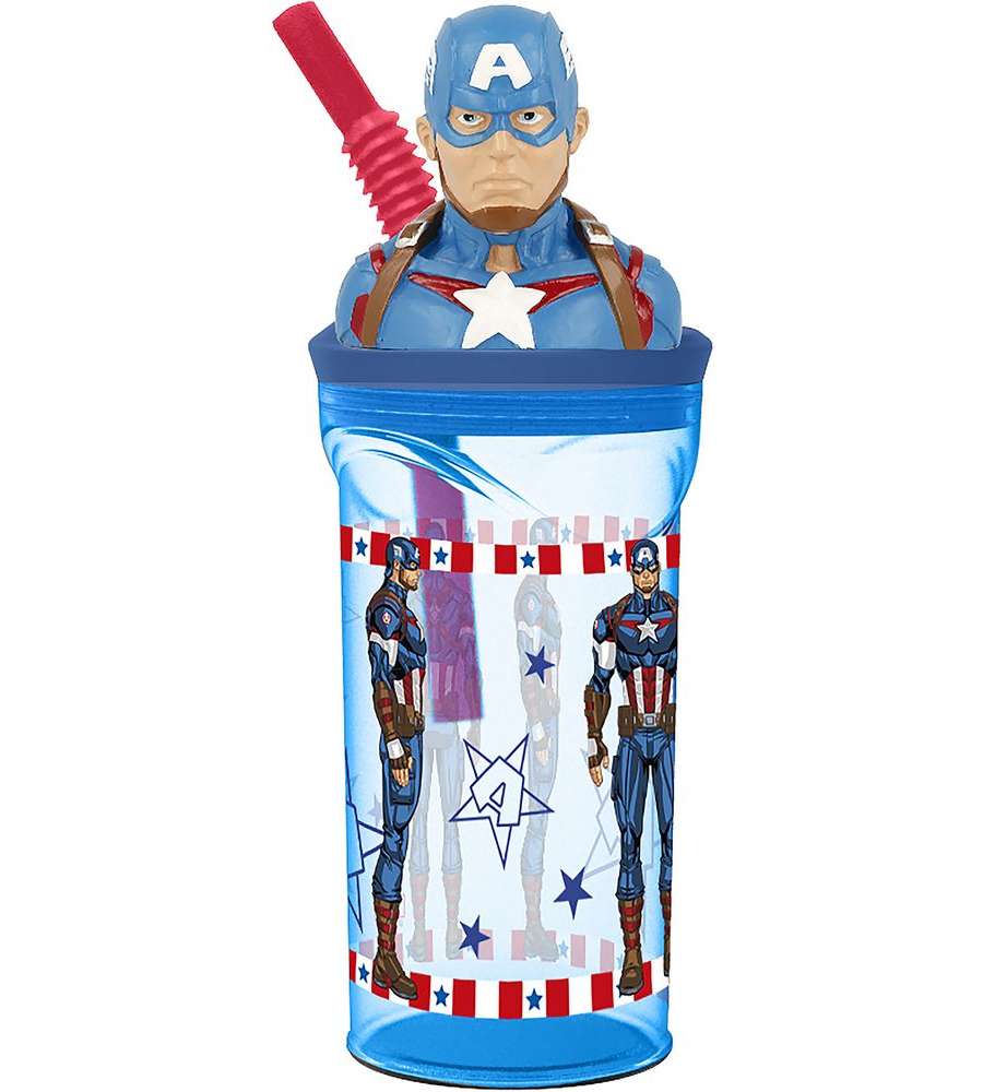 Questo originale bicchiere per bambini da 360 ml è munito di una cannuccia ed inoltre di una figura 3D di uno dei più famosi personaggi del cinema: il supereroe Marvel Captain AmericaAltro 2: