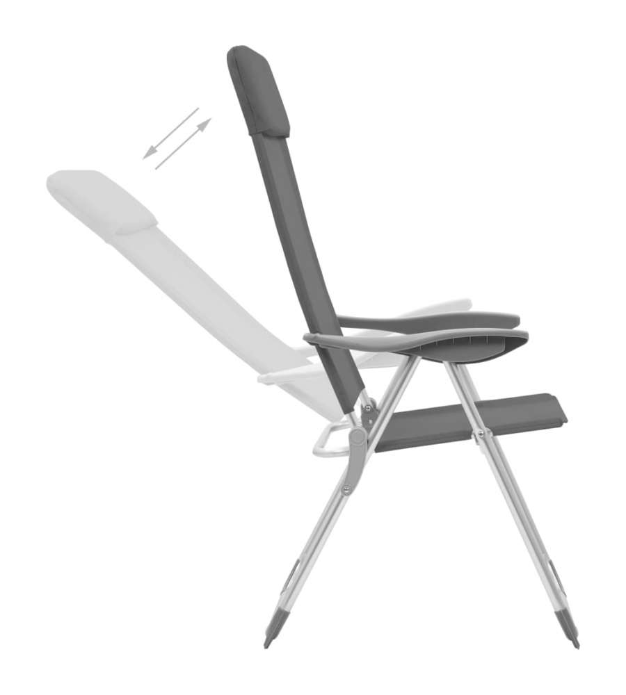 Questo set, composto da 2 sedie da campeggio pieghevoli in alluminio, ? l'ideale per il campeggio, la pesca, per viaggiare o per qualsiasi altra attivit? all'aperto. Le sedie a sdraio possono essere regolate in 5 posizioni diverse e hanno morbidi poggiatesta imbottiti.