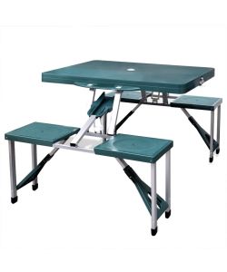 Questo set pieghevole di tavolo da picnic include 1 tavolo e 4 sedie. Con un manico pratico per il trasporto ed un design pieghevole, sar? perfetto da usare in cucine, giardini e patio, per picnic e campeggi.
