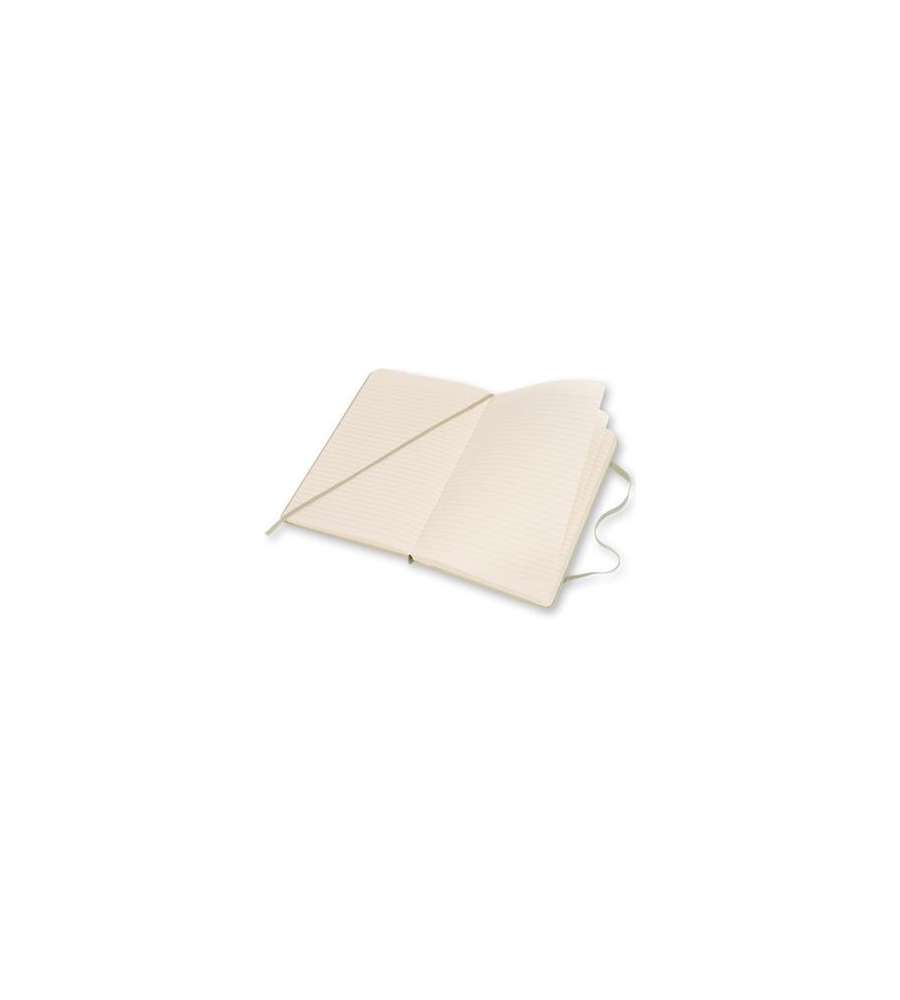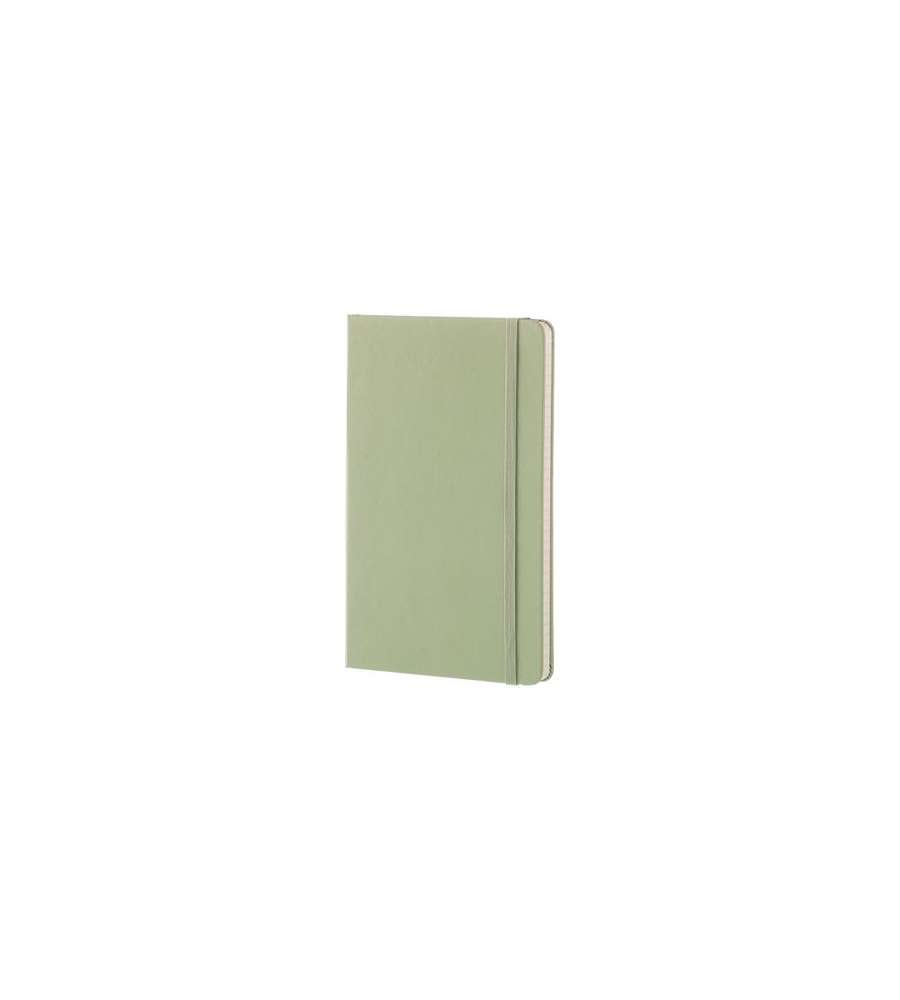 Taccuino rigido Moleskine verde, dimensioni 13x21 cm, con angoli arrotondati, chiusura elastica, segnalibro e tasca espandibile. Pagine color avorio a righe, carta acid-free da 70 g/m², ideale per annotazioni e idee creative.Pagine: