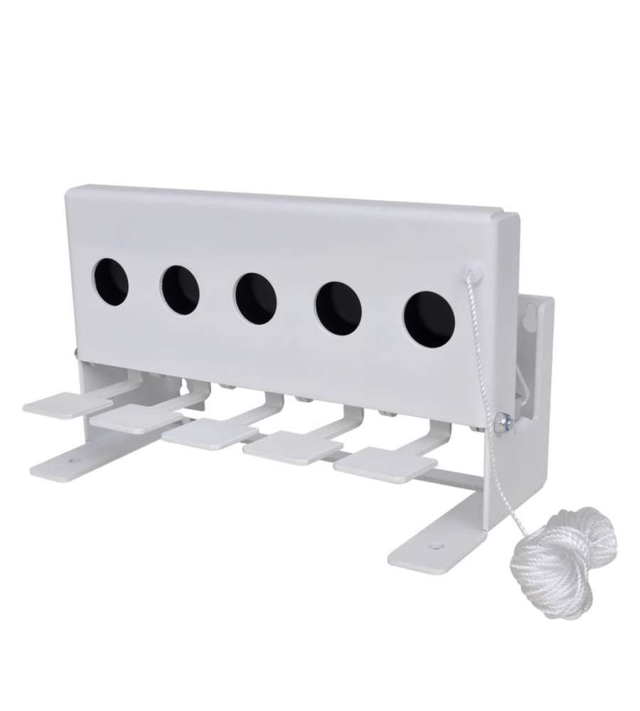 Questa struttura con 5 bersagli per biathlon pu? essere montata al muro oppure in piedi fissata su una superficie piatta.