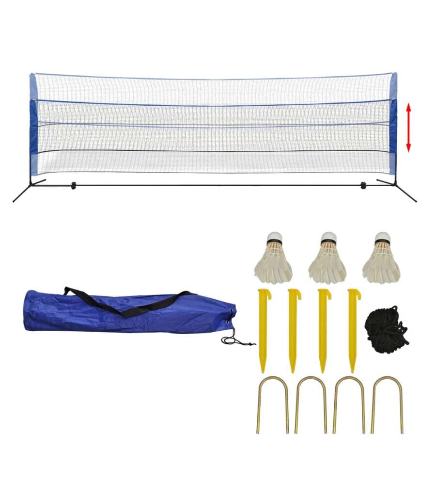 La consegna include: 1 rete da badminton pi? telaio, 3 volani, 4 picchetti di ferro, 4 picchetti di plastica, 2 corde di tipo PP e 1 borsa per il trasporto.