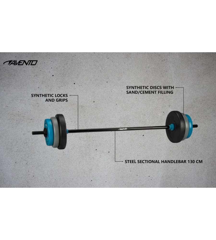 Il set bilanciere regolabile della Avento da 20 kg ? l'ideale per un allenamento vario in cui ? possibile allenare numerosi muscoli.