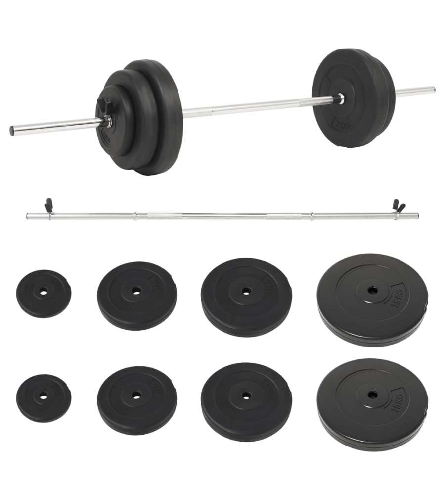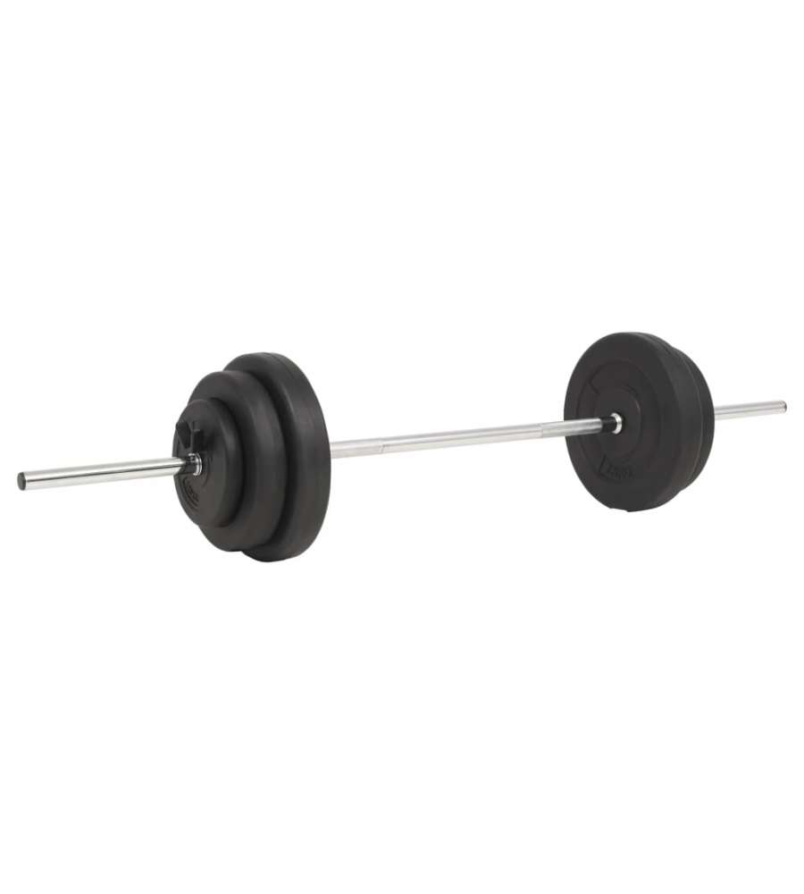 Colore: Nero Materiale: Cemento con rivestimento in plastica, dischi in cemento, barre in acciaio Diametro dei dischi da 15 kg: 39 cm Diametro dei dischi da 7,5 kg: 30 cm Diametro dei dischi da 5 kg: 25 cm Diametro dei dischi da 1,25 kg: 18 cmAltro 1: