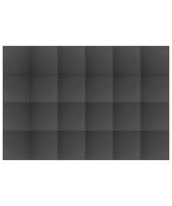 Colore: Nero Materiale: Schiuma EVA (Etilene Vinil Acetato) Dimensioni: 60 x 60 x 1 cm (L x P x A) Superficie totale: 8,64 ? Facile da pulire e riporre Morbido e impermeabile La consegna include: 24 Tappetini per esercizi a incastro