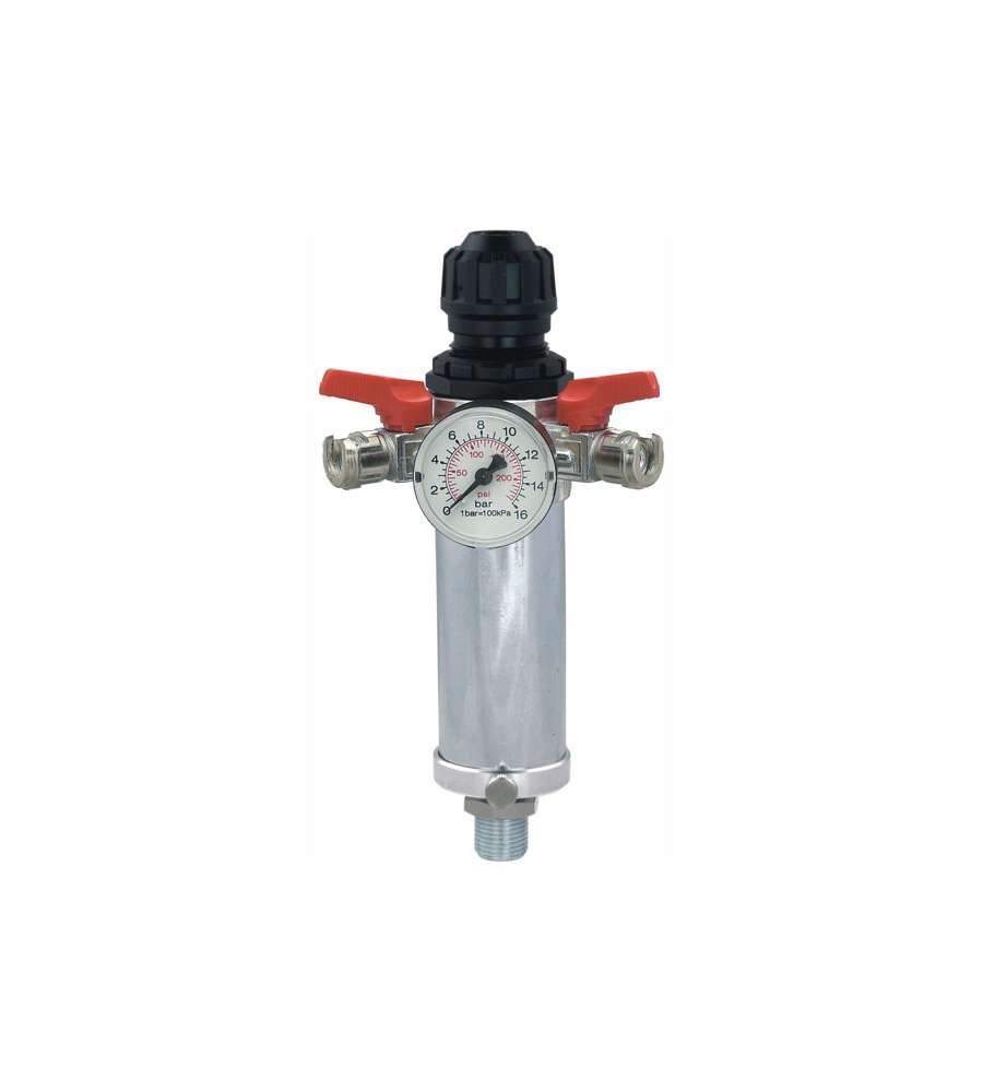 Corpo alluminio Doppio rubinetto linea attacco baionetta Manometro mm 50 scala bar 0/16 Attacco filetto maschio 1/2"