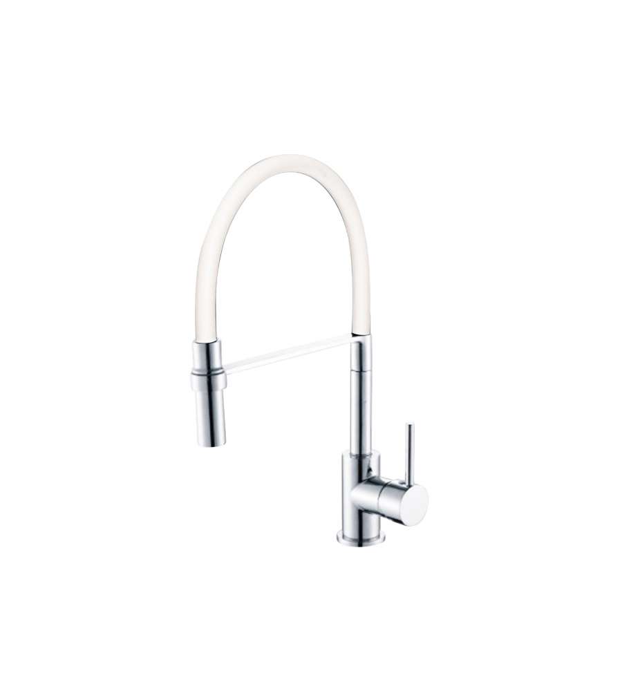 miscelatore a bocca alta per lavello, estraibile in gomma. Cartuccia speciale 35 mm. La bocca è orientabile ed è rivestita da uno strato di silicone. Coppia flessibili 40 cm. Dvgw f3/8 x m8.I dati sottostanti riguardano la sede legale e le Informazioni correlate del produttore del prodotto.