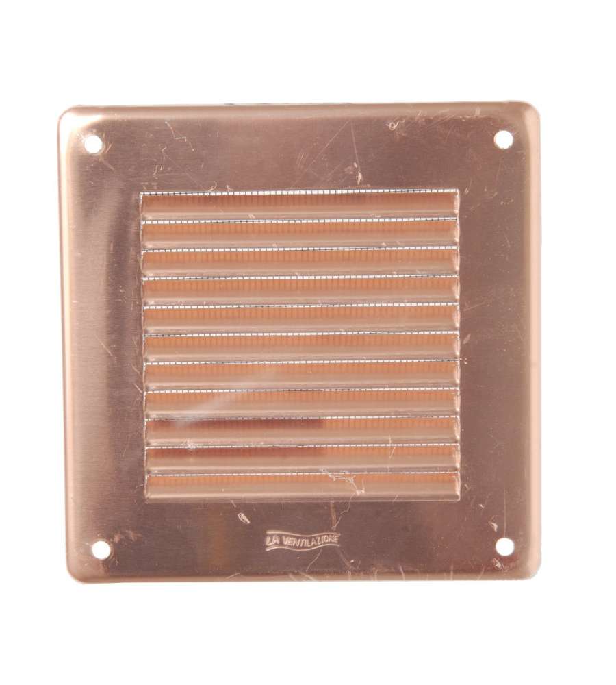 Descrizione: Griglia di Ventilazione in Rame 140x140 mm con rete antinsetti. Ideale per un flusso d'aria ottimale, resistente e dal design elegante. Facile da installare, perfetta per ogni ambiente.