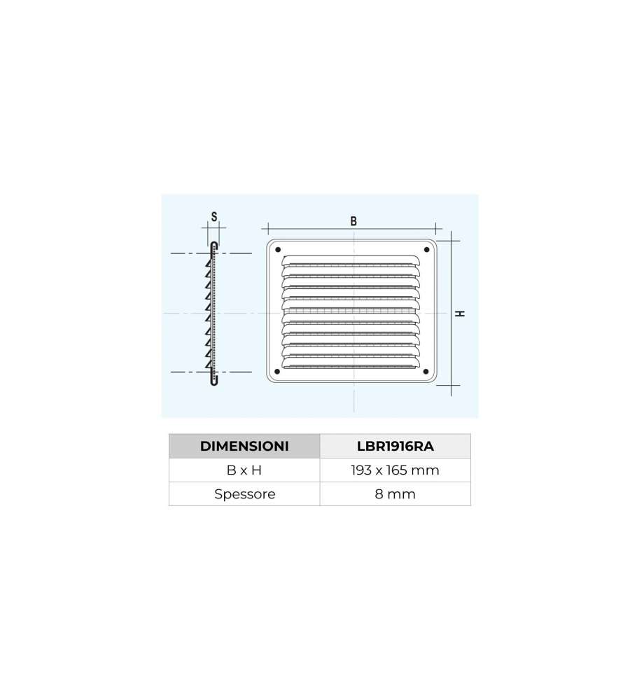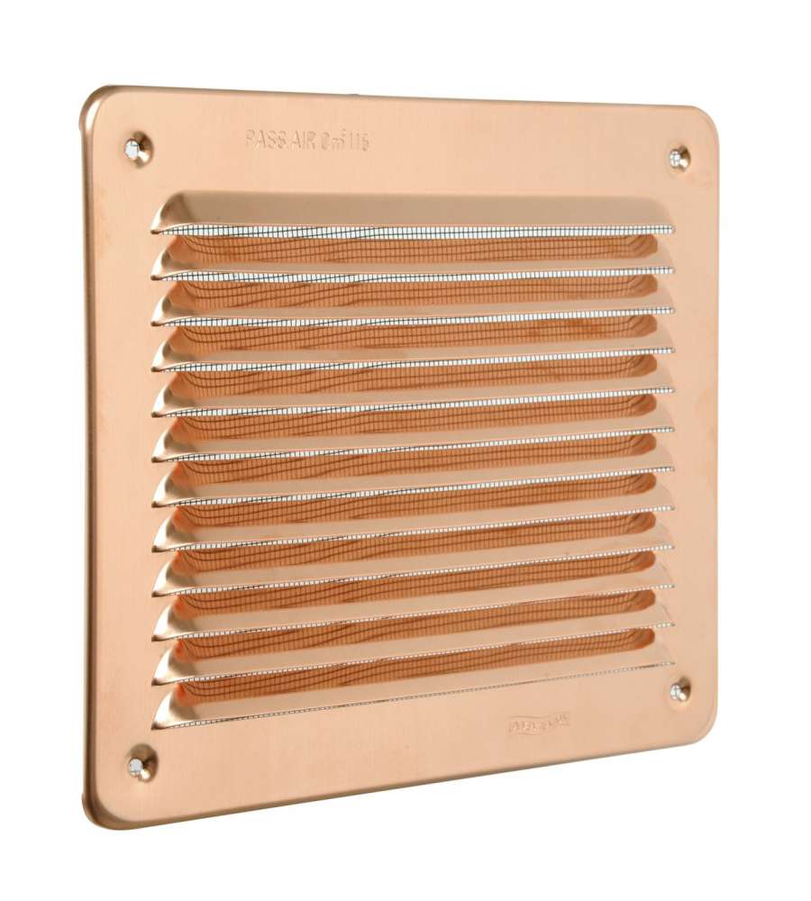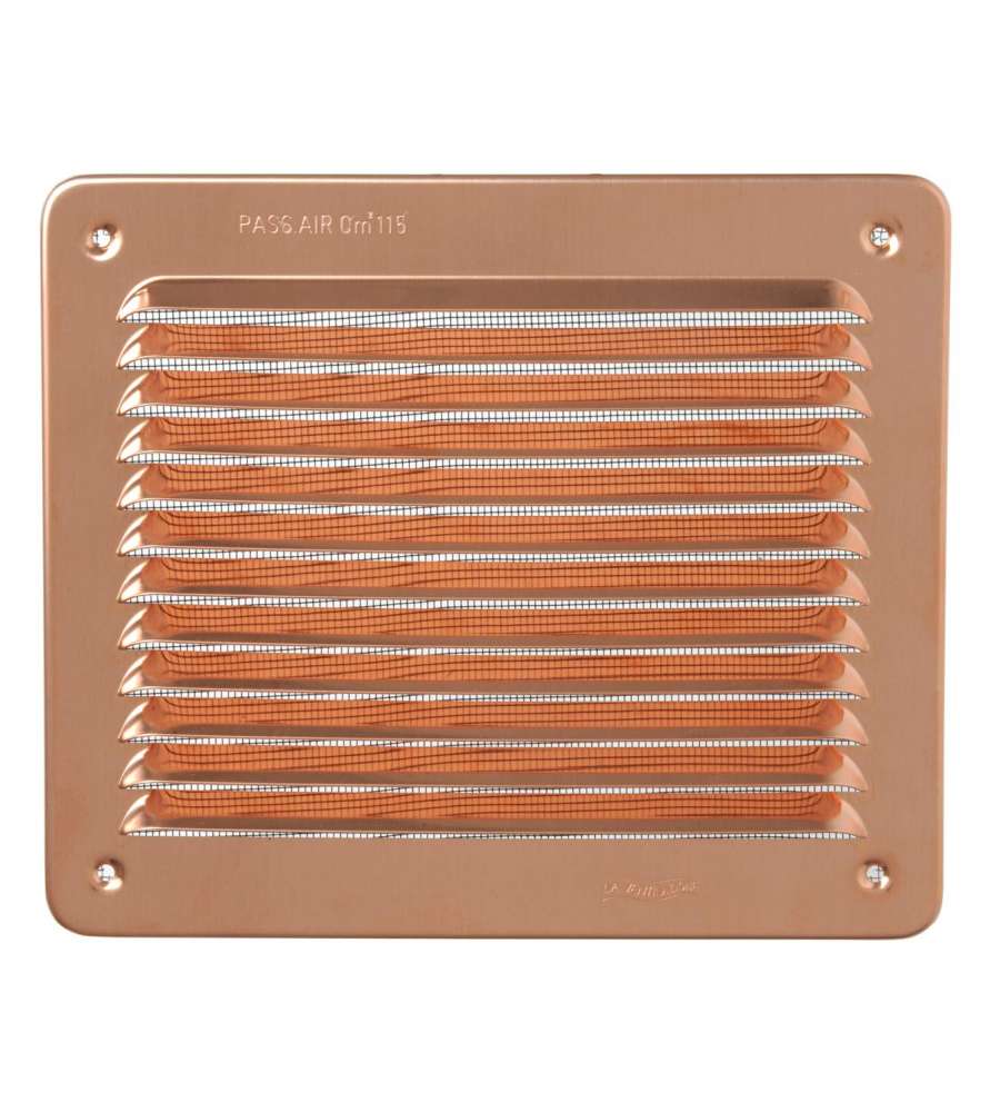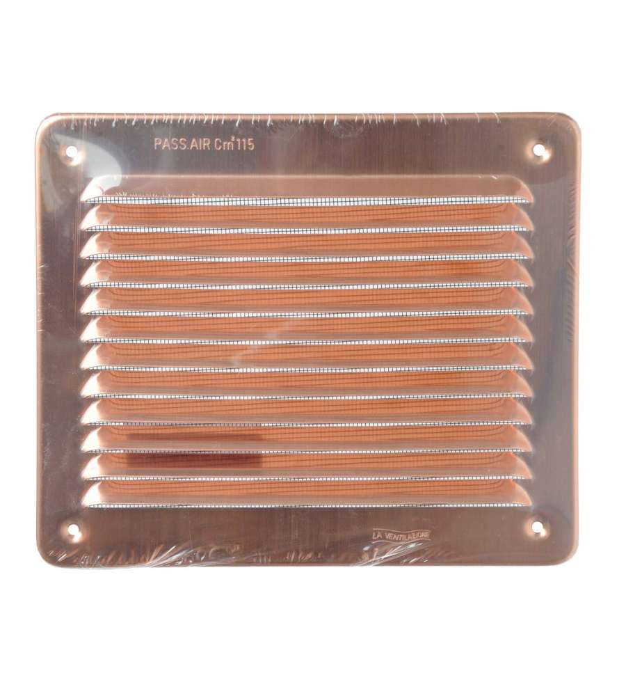Descrizione: Griglia di ventilazione in rame 193x165 mm, da sovrapporre, con rete antinsetti. Spessore 8 mm e passaggio aria 115 cm², ideale per garantire un'ottima aerazione in ogni ambiente.