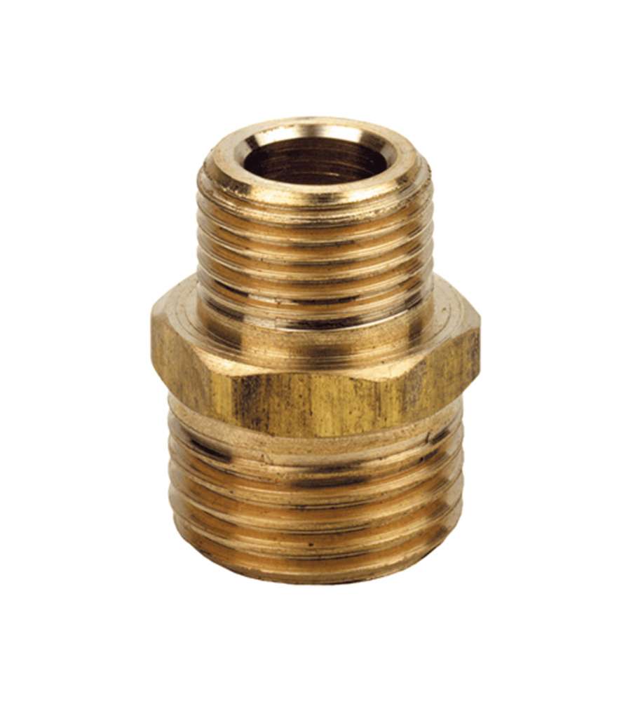 Nipple maschio ridotto in ottone giallo, misura 1/2×3/4. Doppia filettatura per un collegamento pratico tra misure diverse. Formato compatto e funzionale, ideale per raccordi in ambito idraulico e fai-da-te.Altro 1: