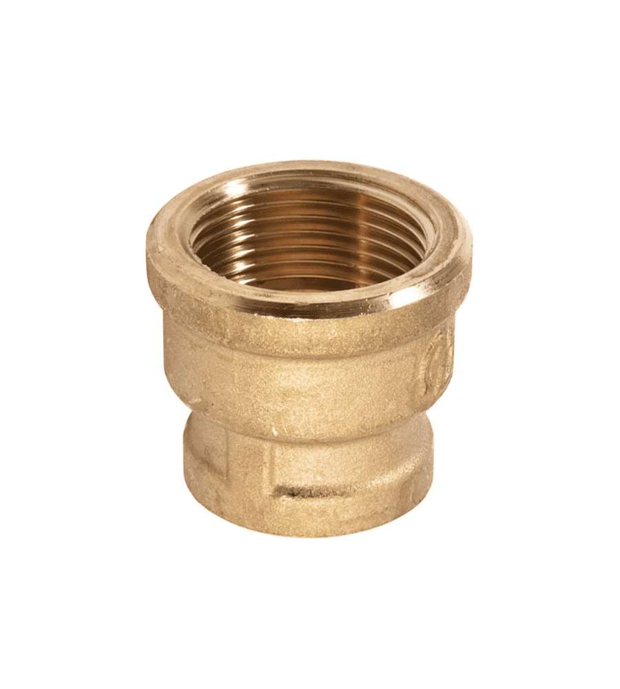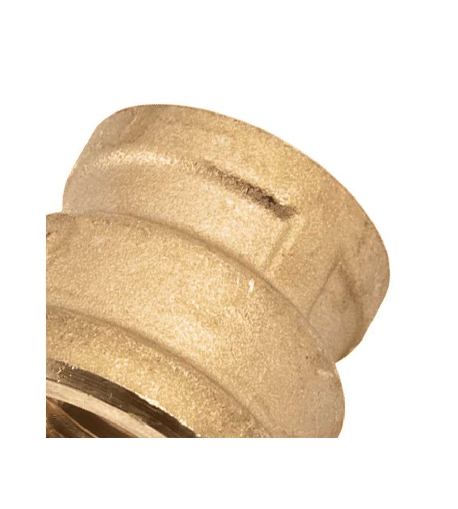 Raccordo manicotto in ottone giallo con attacchi Femmina-Femmina (FF). Configurazione ridotta 1/2"x3/8", ideale per collegamenti tra tubazioni di dimensioni diverse. Resistente e di alta qualità, perfetto per impianti idraulici.Altro 1: