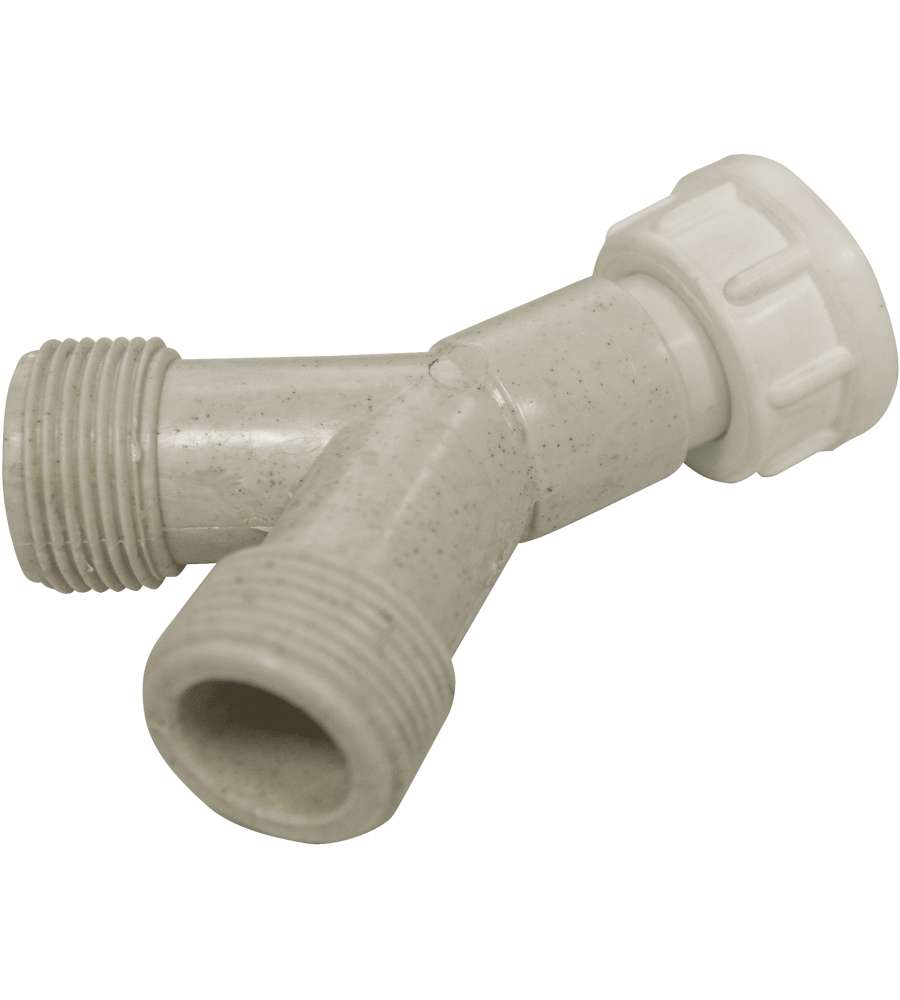 Raccordo a "Y" per carico lavatrice in polipropilene, dotato di dado girevole da 3/4"F. Design pratico per un collegamento semplice e funzionale, ideale per gestire il carico della lavatrice in modo efficiente. Peso: 0,02 kg.Altro 1: