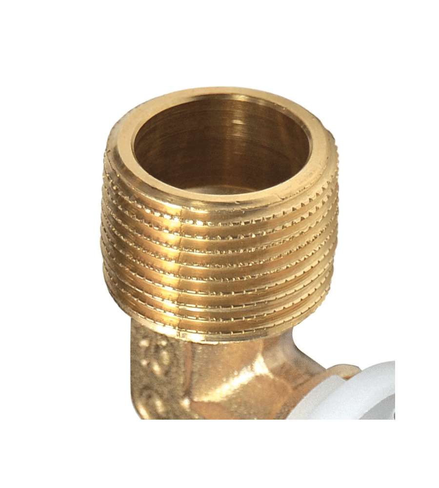 Gomito maschio 1/2x16 a pressare per multistrato, progettato per collegamenti ad angolo. Materiale plastico, installazione semplice e veloce. Ideale per impianti multistrato, compatto e duraturo.Altro 1: