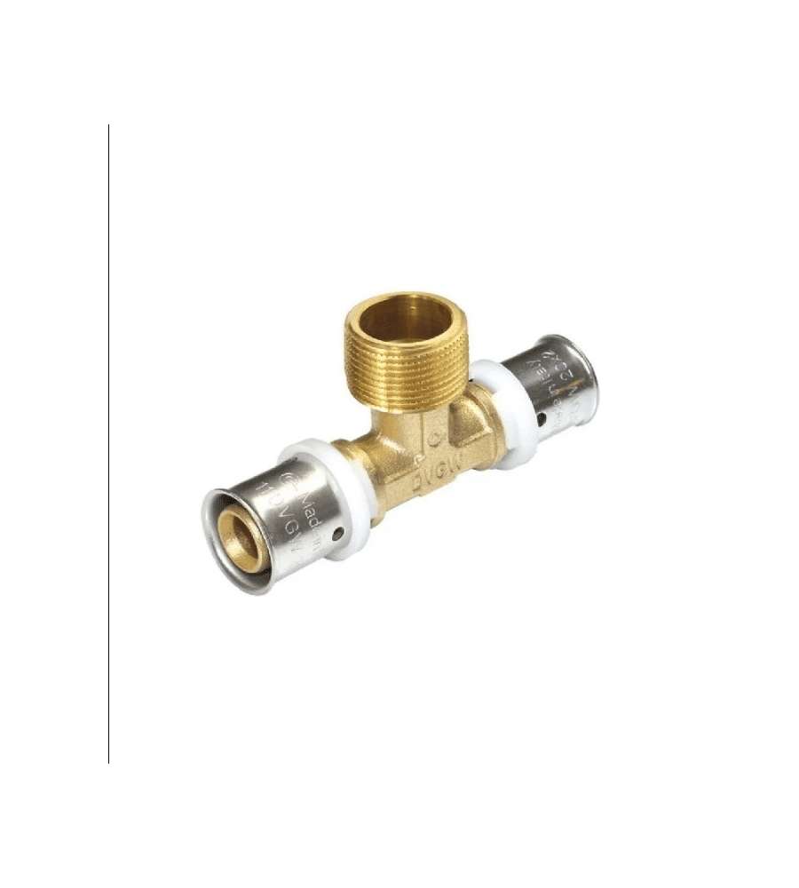 Raccordo a tee maschio diam. 1/2x16, connessione a pressare, specifico per tubazioni multistrato. Ideale per realizzare derivazioni a T negli impianti, garantendo installazioni ordinate e sicure. Marca: IDRO-BRIC.Altro 1: