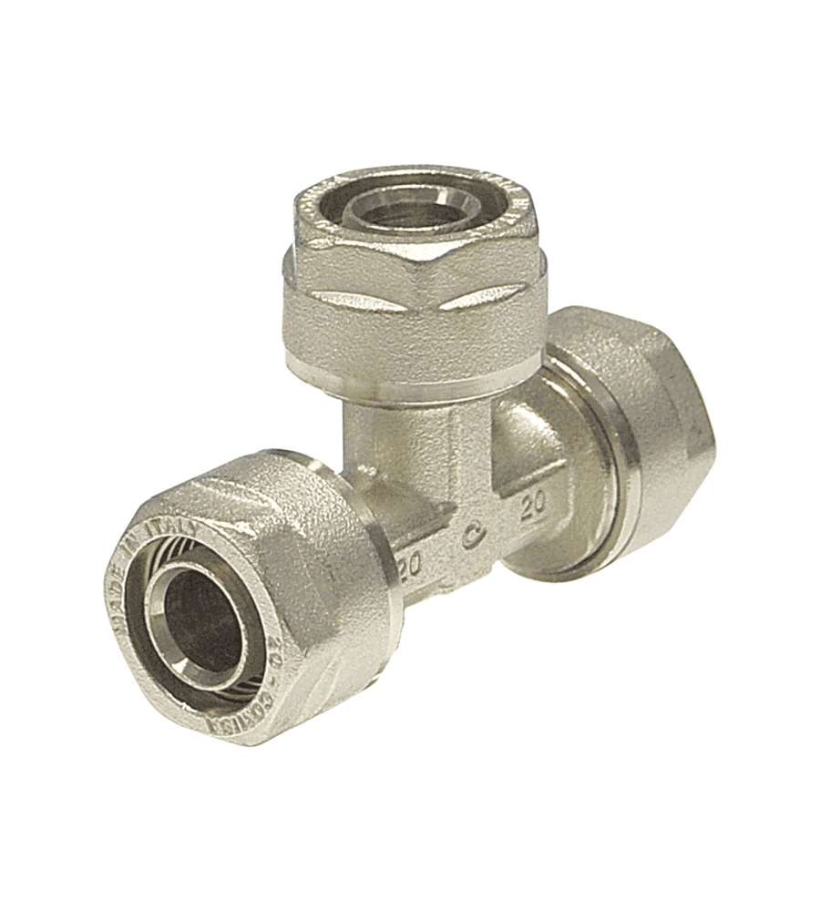 Raccordo T ridotto a stringere con inserto fisso, ideale per derivare tubi in due direzioni. Garantisce tenuta stagna e stabilità del tubo. Dimensioni attacchi: 20x16x20 mm. Realizzato in materiale resistente per applicazioni idrauliche.Altro 1: