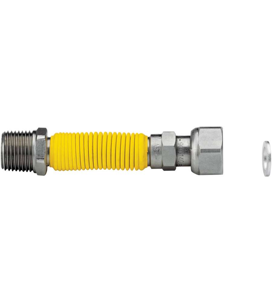 Flessibile estensibile per gas, realizzato in acciaio inox rivestito giallo. Attacco 1/2" MF, lunghezza da 200 a 410 mm, ideale per impianti gas. Struttura solida e facilmente identificabile, garantisce un collegamento flessibile.Altro 1: