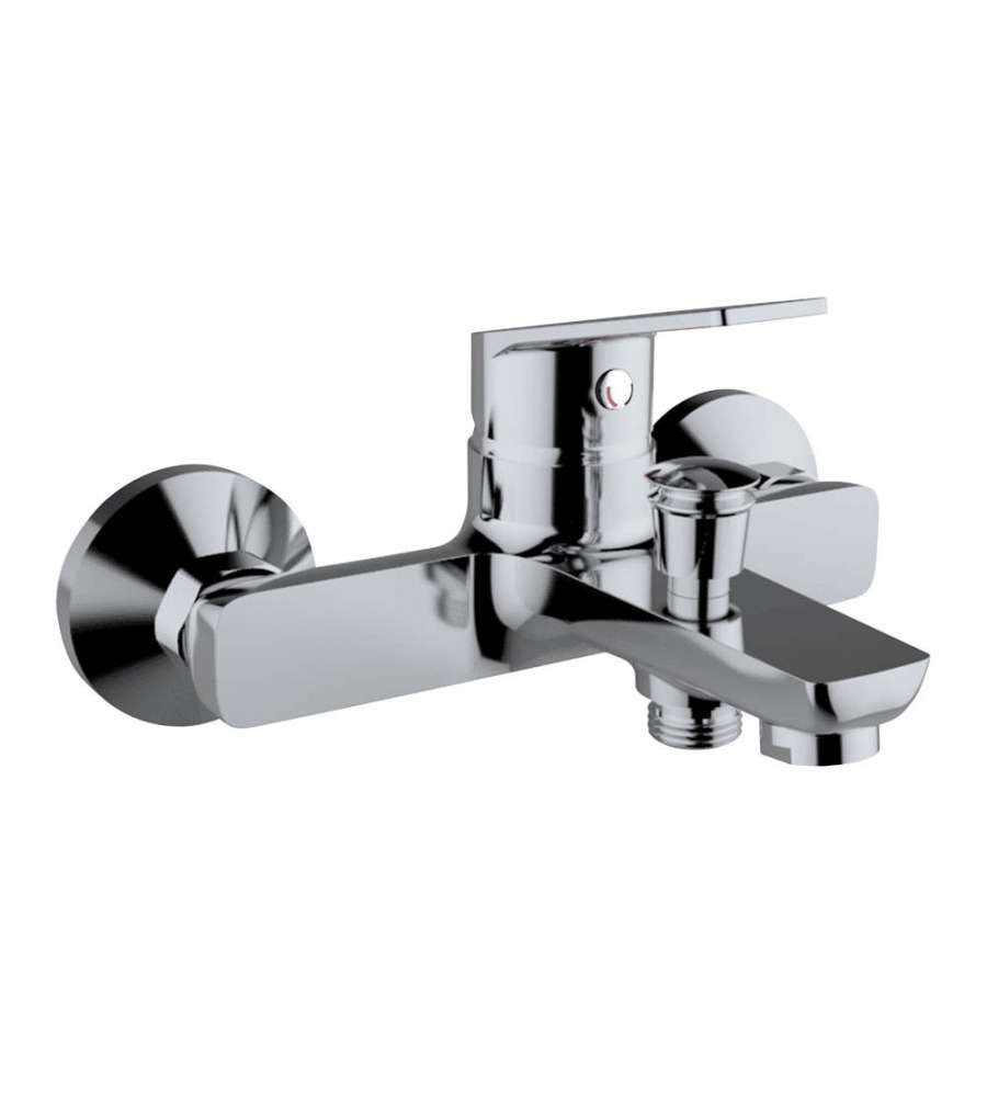 Miscelatore monocomando per vasca in ottone con finitura cromo. Leva in metallo e cartuccia a dischi ceramici Ø 35mm per un utilizzo pratico. Include raccordi eccentrici e rosette coprimuro per un'installazione efficiente e ordinata.Altro 1: