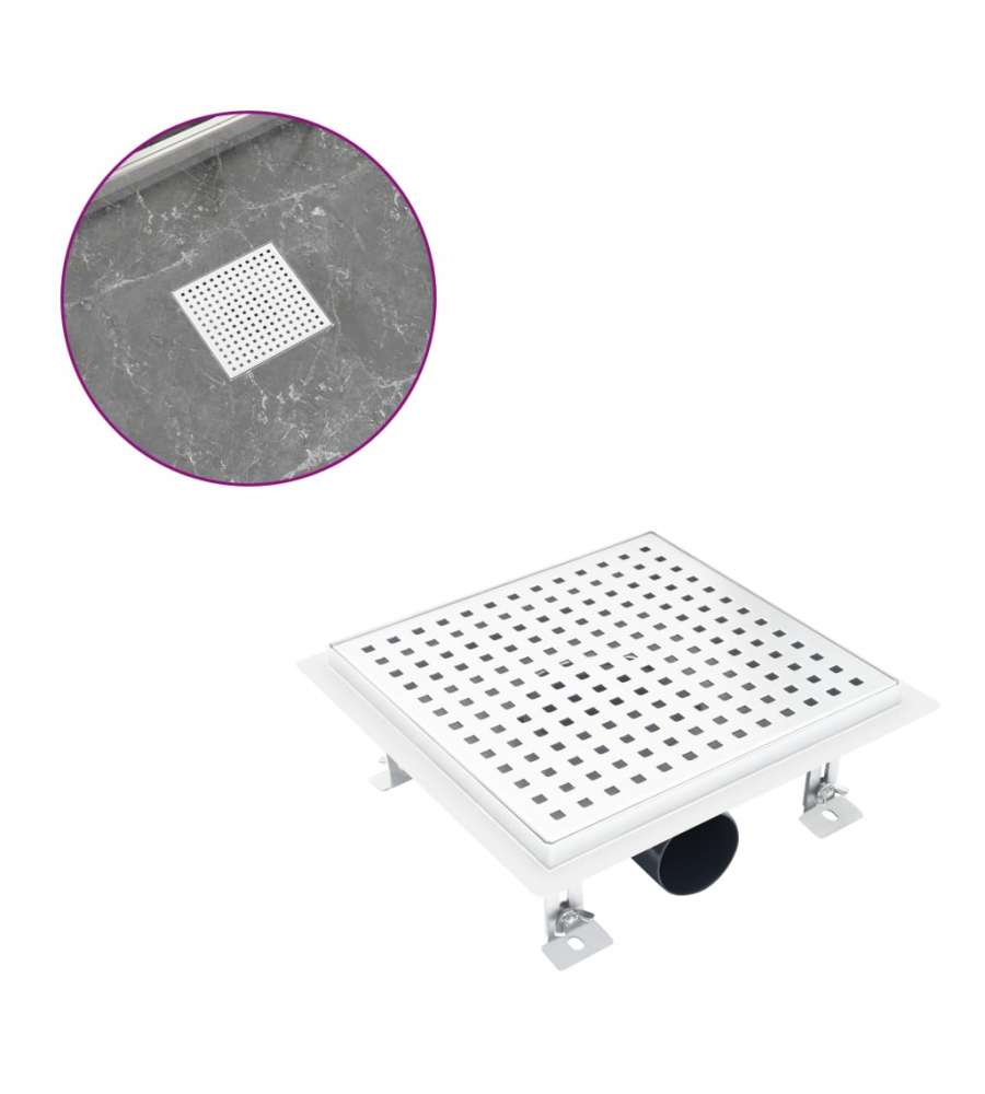 Il nostro scarico per doccia non può sicuramente mancare dalla vostra doccia! Colore: Argento Materiale: Acciaio inossidabile Misura: 20x20 cm (LxP) Diametro uscita: 9 cm Altezza totale incluso sifone: 6,5 - 10,1 cmAltro 6: