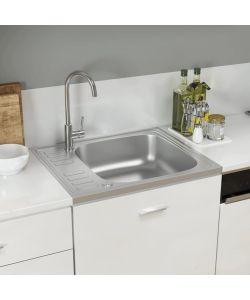Il lavello ? realizzato in SUS (acciaio inossidabile), il che lo rende resistente al calore, ai graffi, agli urti e facile da pulire. Questo lavabo ? dotato di lati extra spessi, il montaggio avviene sopra il top e lo scolapiatti laterale vi offre spazio extra per le stoviglie. Il rubinetto pu? essere posizionato su 2 lati grazie alla presenza di entrambi i fori. Essendo il lavabo completamente reversibile, pu? essere posizionato sia sul lato sinistro o destro della base.