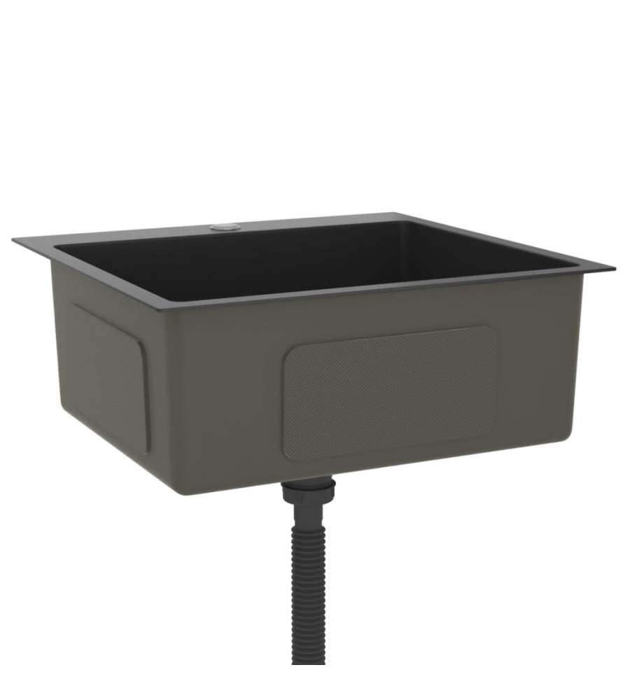 Colore: Nero Materiale: Acciaio inossidabile con finitura spazzolata Dimensioni complessive: 53x50x20 cm (LxPxA) Spessore: 2,5 mm Diametro del foro per rubinetto: 35 mm Sicuro per il contatto con gli alimentiAltro 7: