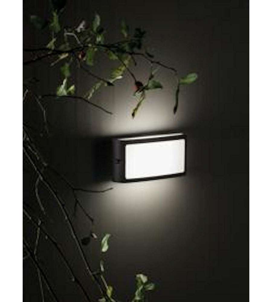Descrizione: Applique Sovil linea Screen grigio, ideale per illuminazione interna ed esterna. Realizzata in alluminio e resina satinata, offre un flusso luminoso di 700 lumen con risparmio energetico del 85%.